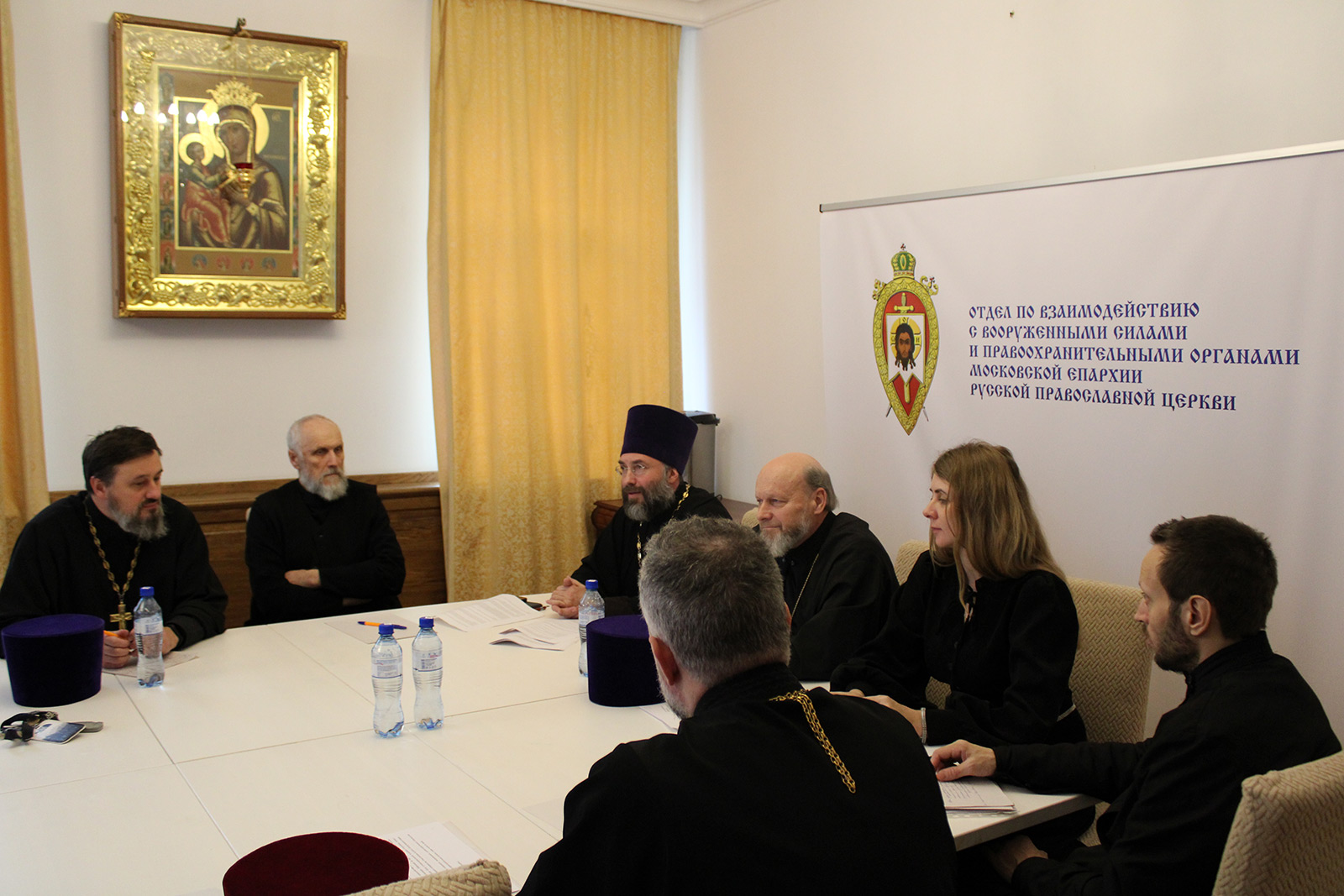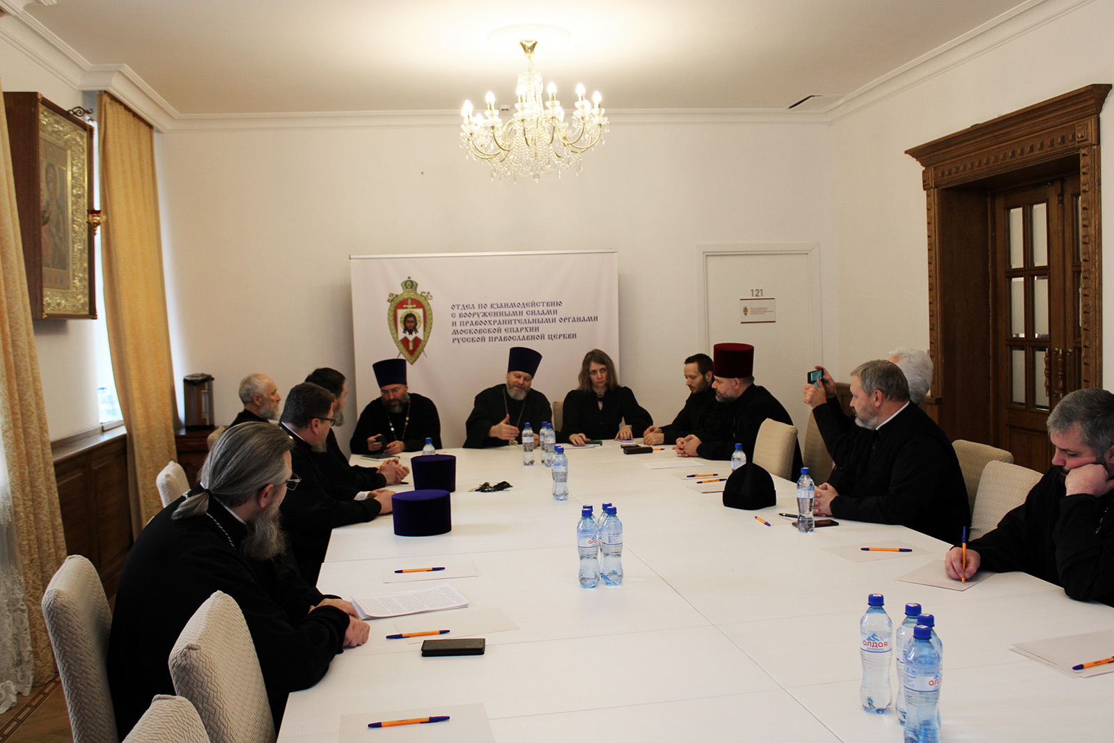 В совещании приняли участие клирики Московской Епархии, ответственные за взаимодействие с Вооруженными Силами и правоохранительными органами.