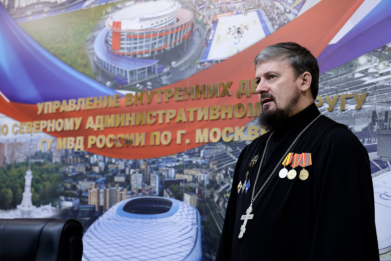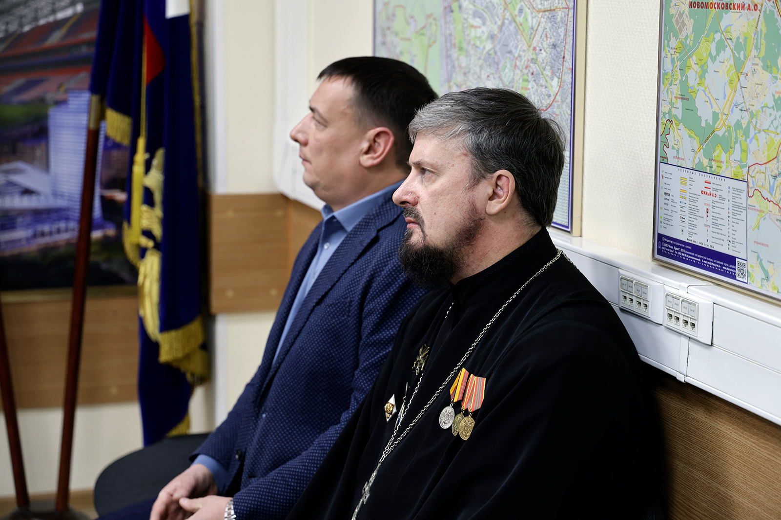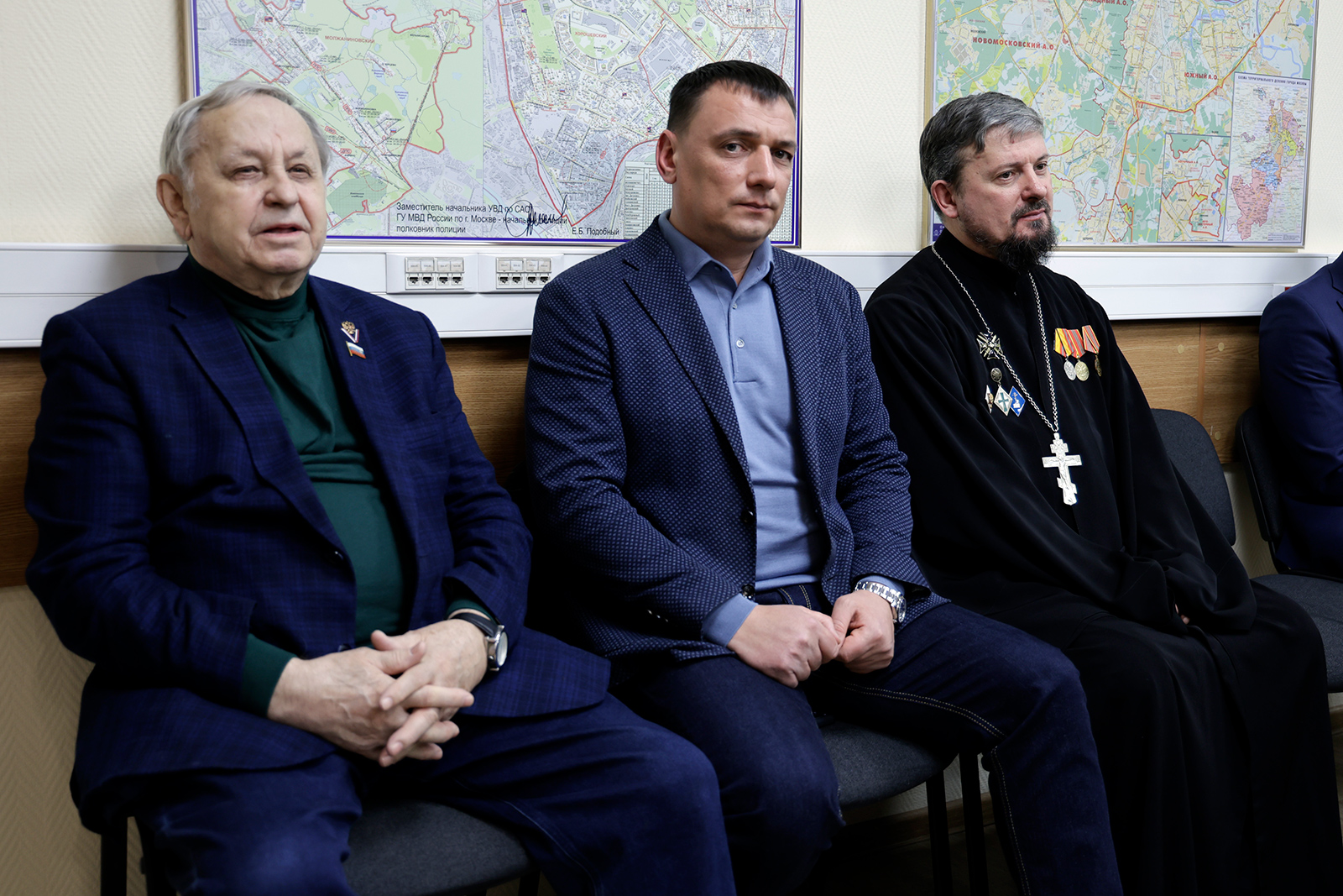 По благословению настоятеля храма блаженной Матроны Московской в Дмитровском протоиерея Димитрия Синицына, ответственного за взаимодействие с Вооруженными силами и правоохранительными органами в Северном викариатстве, в данном заседании принял участие его помощник по Знаменскому благочинию иерей Дионисий Солдатенков, клирик храма преподобного Серафима Саровского в Дегунино.