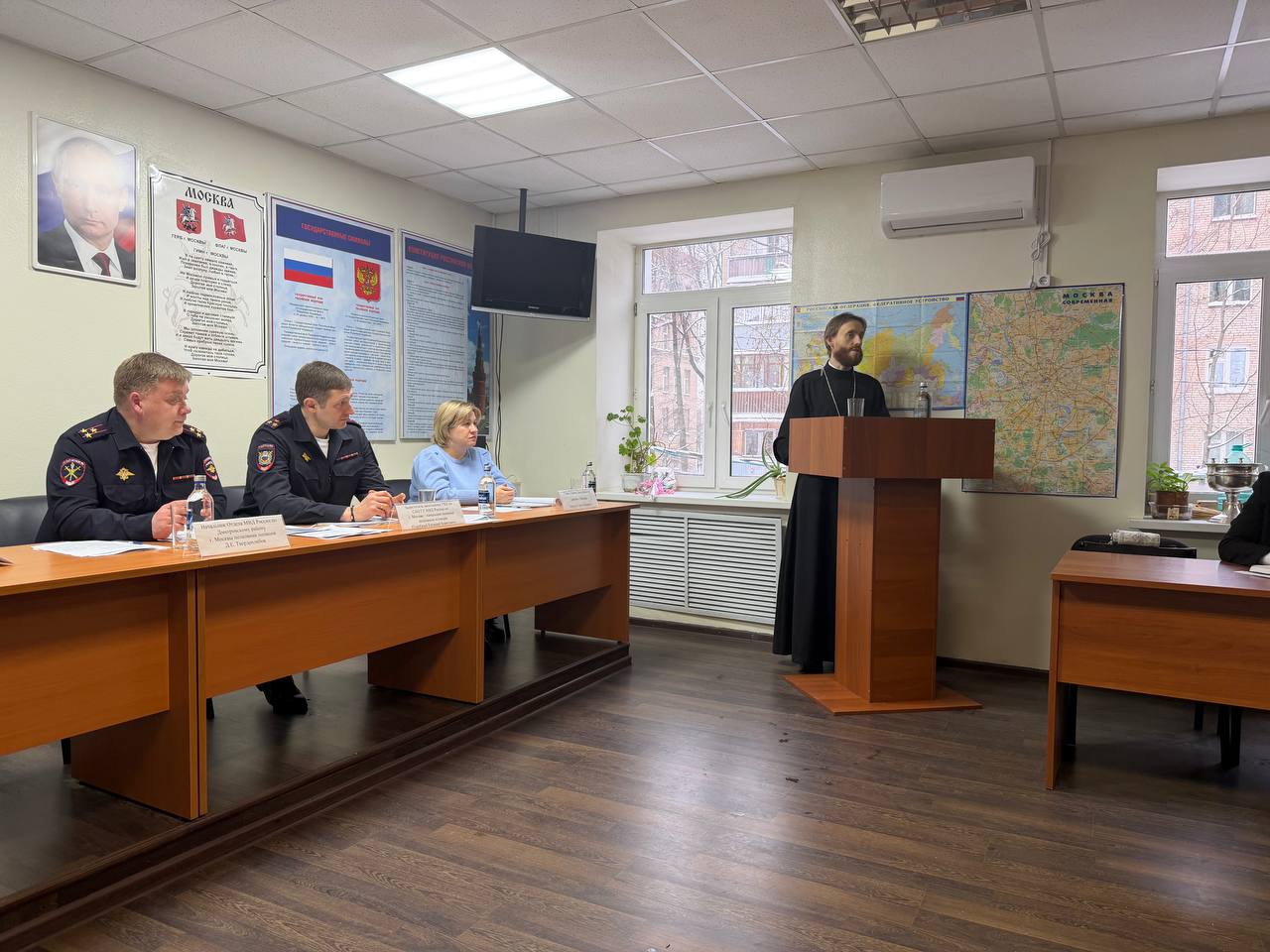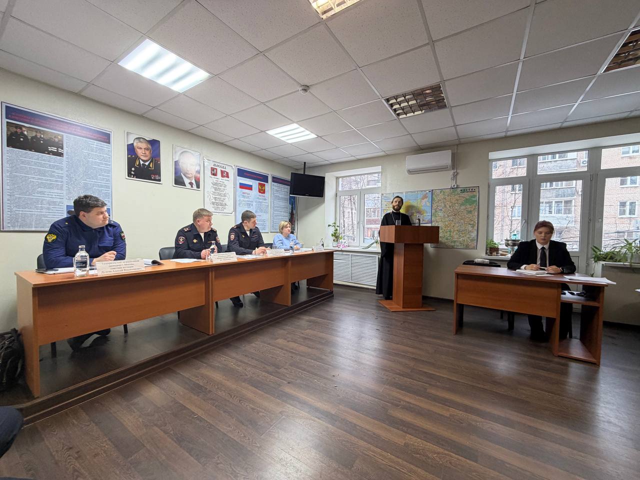 15 января 2026 года, по благословению настоятеля храма блж. Матроны Московской в Дмитровском протоиерея Димитрия Синицына, клирик нашего прихода иерей Александр Фадеев принял участие в совещании по итогам года сотрудников районного Отдела ГУ МВД города Москвы.