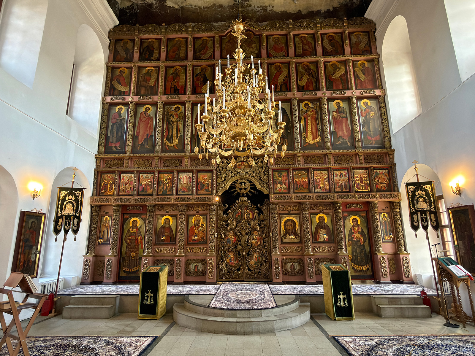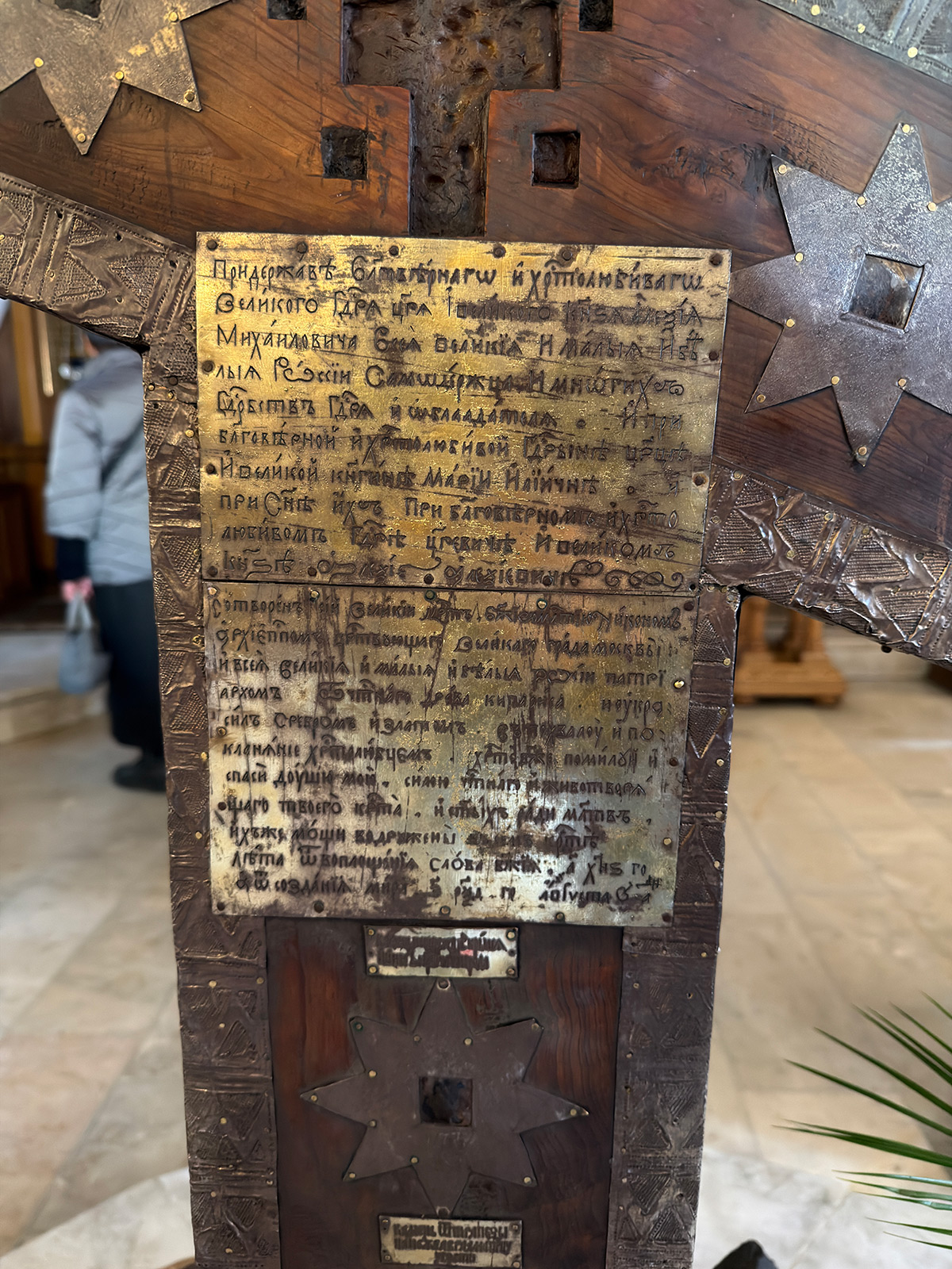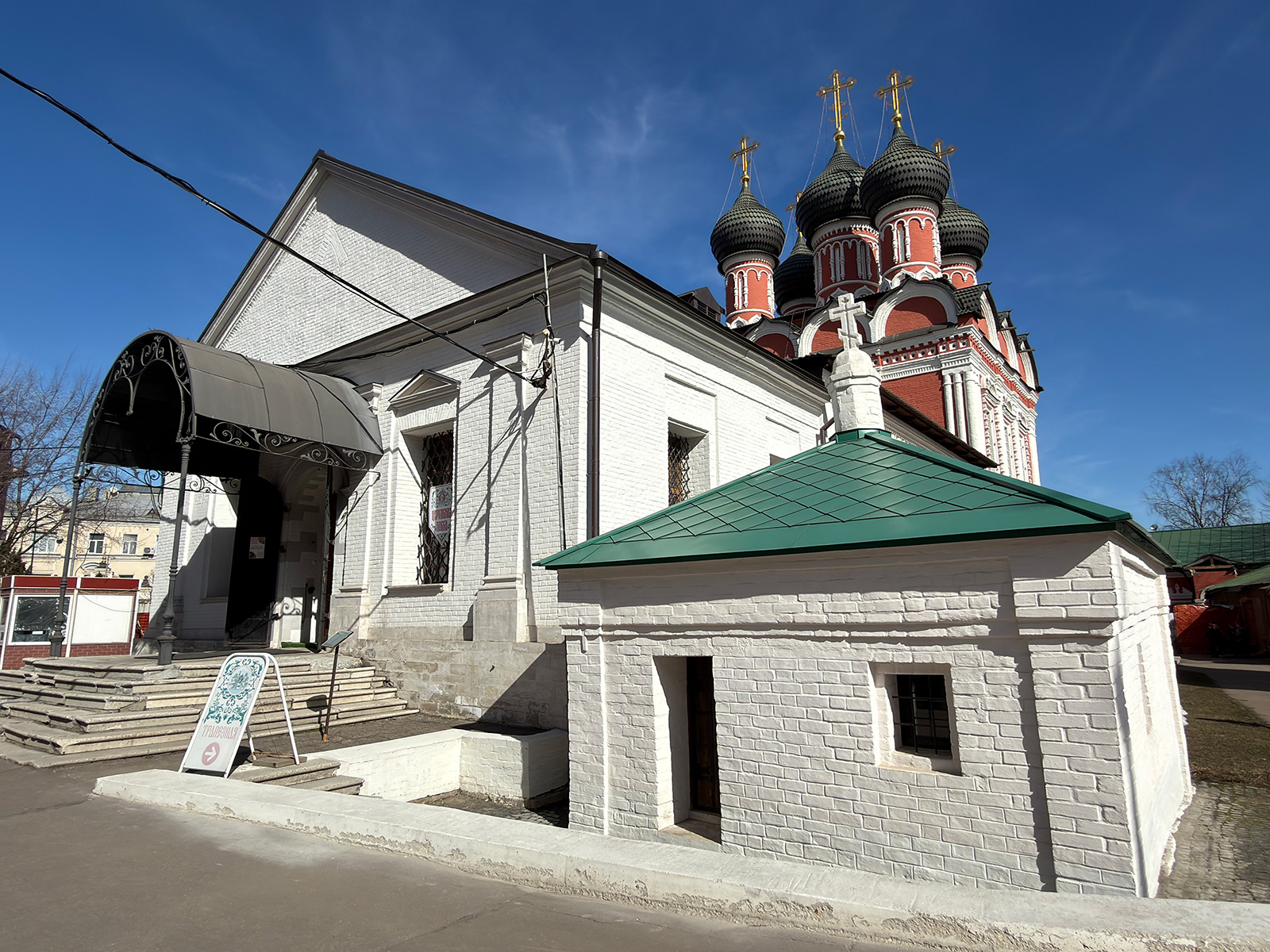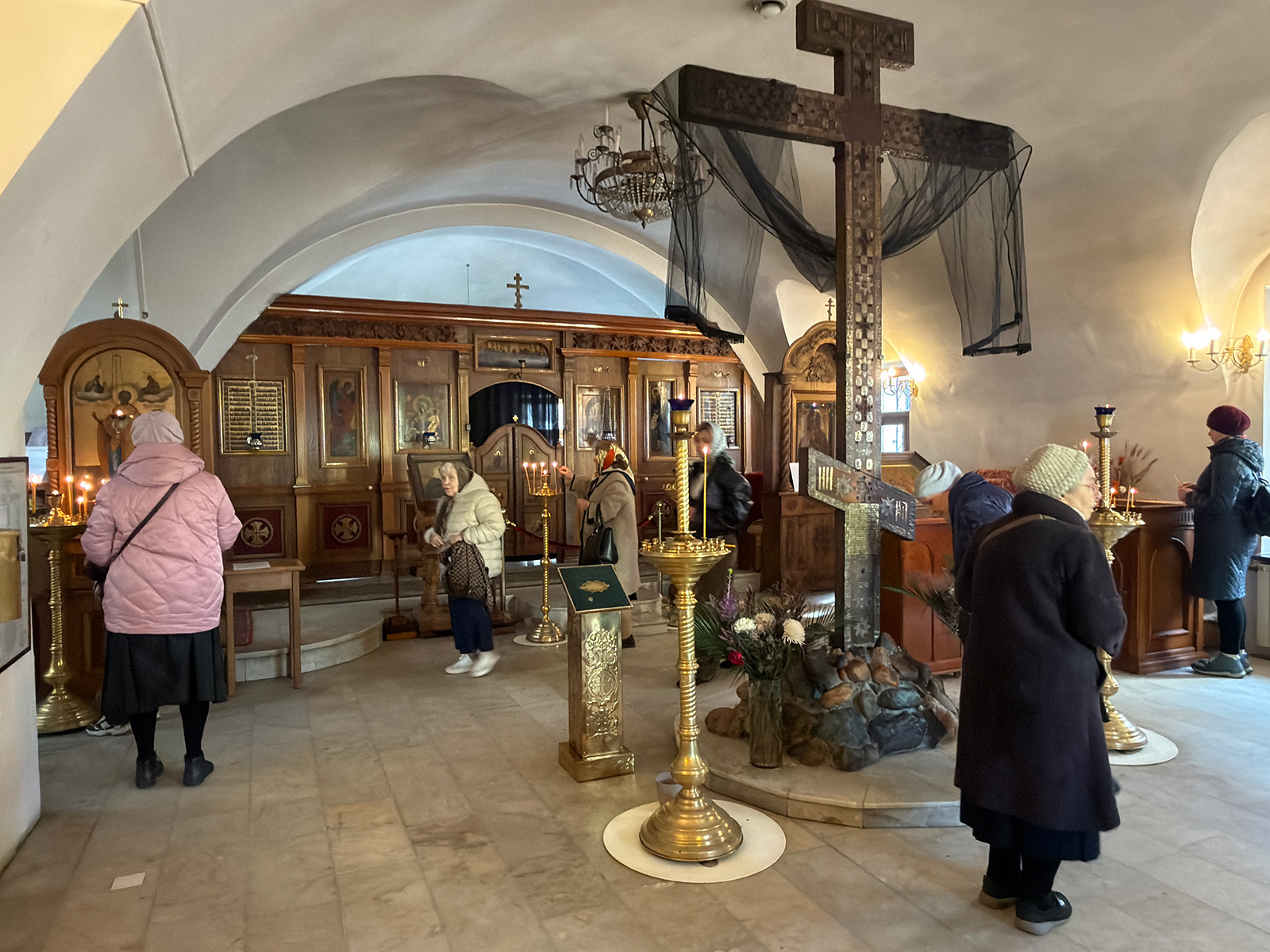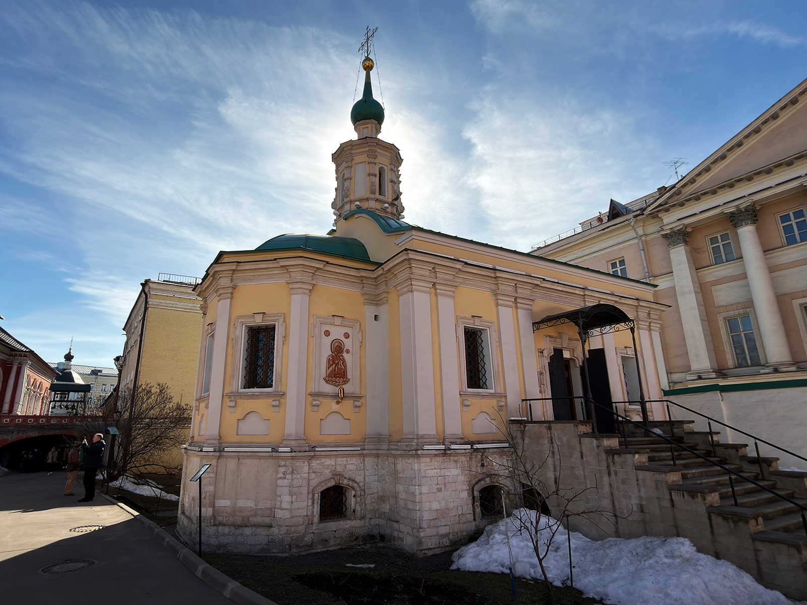 Интересный факт: в обители много святынь, связанных с именем Сергия Радонежского. Кроме храма в честь этого святого земли Русской, построенного на территории монастыря по указу Петра I, совсем рядом, в Крапивенском переулке, есть еще один храм преподобного Сергия Радонежского. Этот храм известен своей уникальной святыней – Кийским Крестом патриарха Никона. Этот Крест вмещает несколько сот частиц мощей святых и 16 камней, святынь с мест библейских событий. И конечно же, мы не смогли не побывать в этом святом месте и не поклониться Кресту по пути в обитель…
