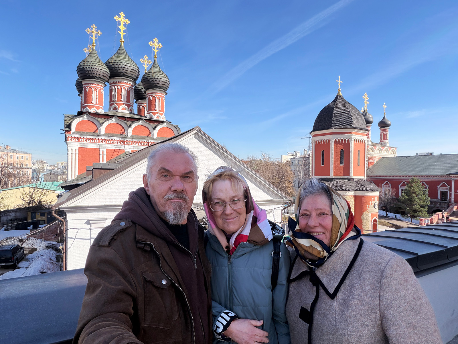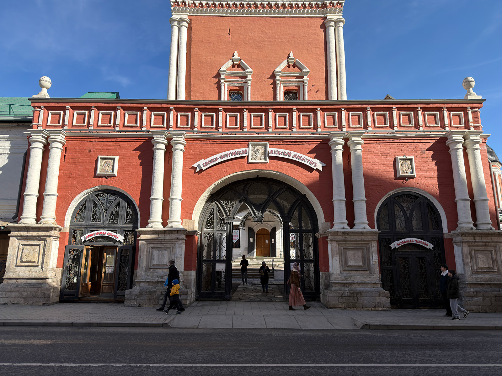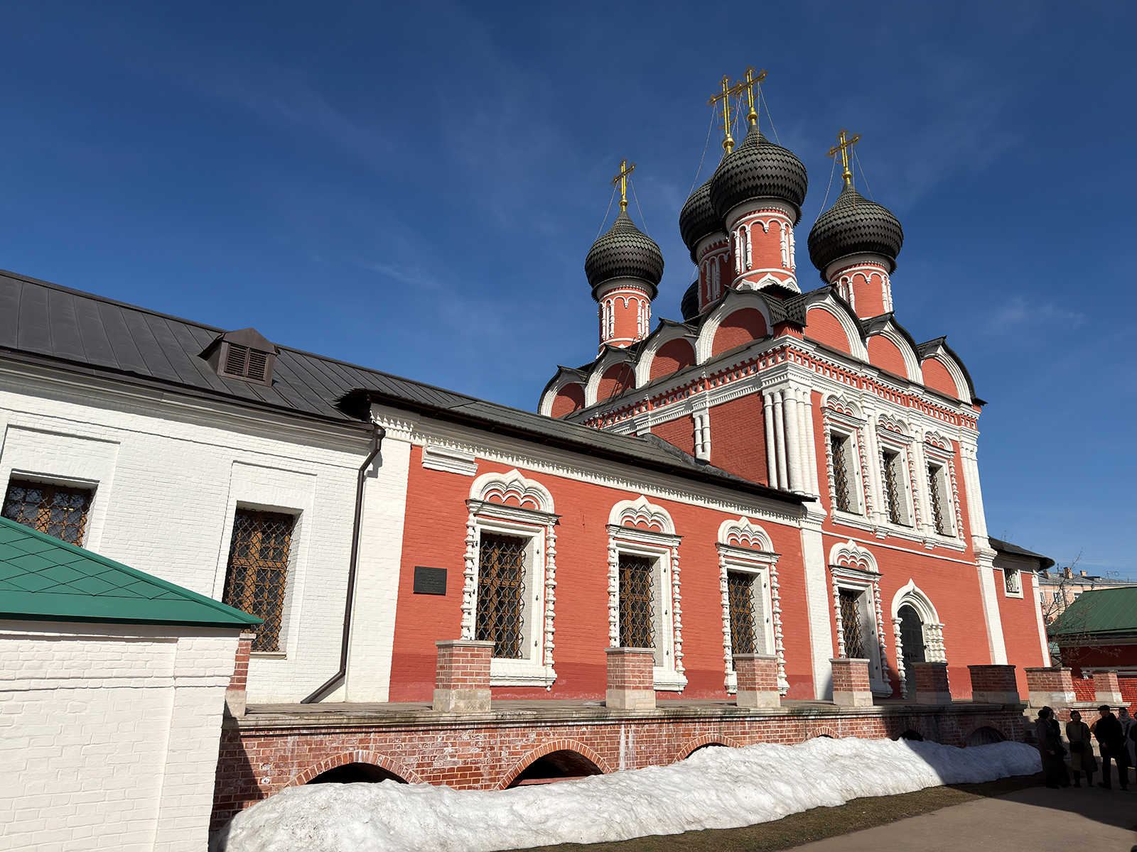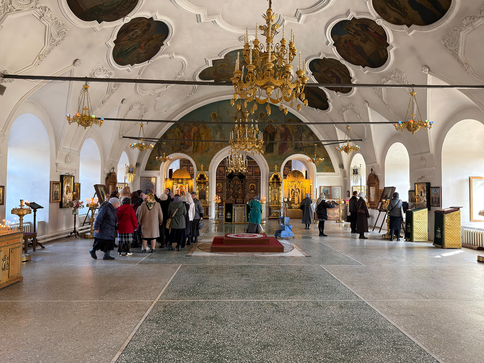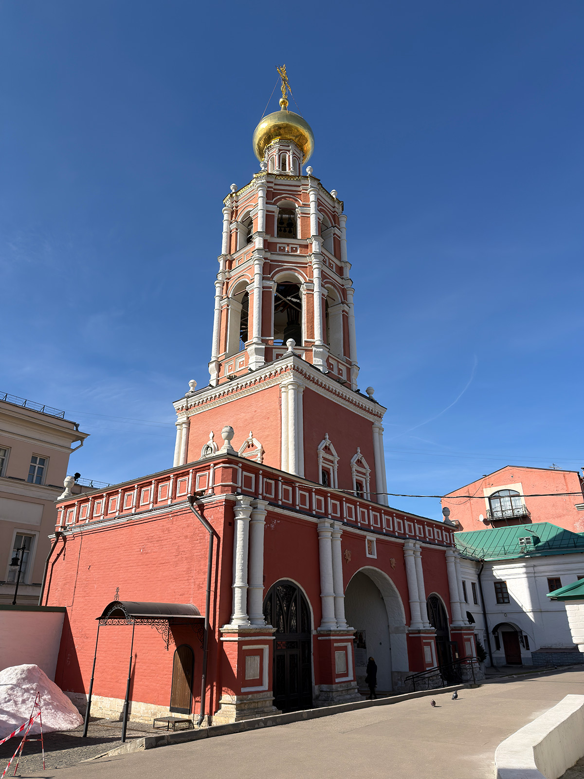 Сопровождая нас по его территории, наш гид Наталья показала нам все храмы, колокольню (с путешествием на ее смотровые площадки и в Покровский храм), и рассказала обо всех святынях, находящихся там. Ее живой рассказ позволил нам увидеть и прожить историю обители с древних времен до сегодняшнего дня. С высоты надвратной колокольни мы увидели дорогу к Кремлю, петляющую среди плотной жилой застройки, проложенную самим митрополитом Петром для “тайных” путешествий в город, и башни Кремля, и расположенный по соседству Сретенский монастырь, и многие другие храмы и культурные центры столицы. Мы прошли в Нарышкинские палаты и познакомились с экспозицией, посвященной новомученикам, и конечно же побывали в Сергиевском храме и поклонились списку Влахернской иконы Божией Матери.