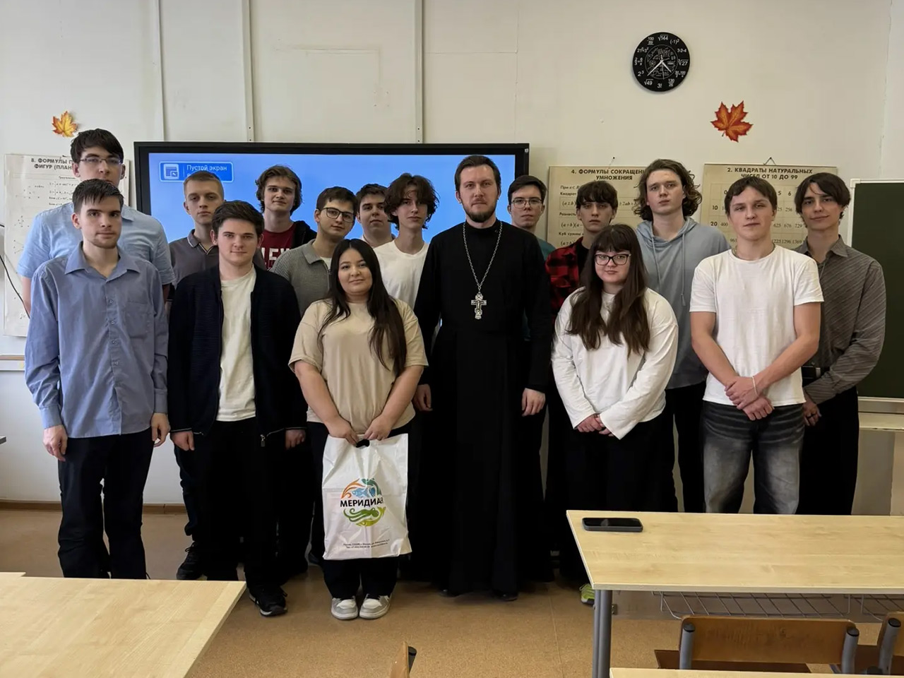 27 марта 2026 г., по благословению настоятеля храма блж. Матроны Московской протоиерея Димитрия Синицына, ответственный за образовательную деятельность в Дмитровском районе г. Москвы иерей Николай Калиниченко встретился с учащимися 11-А класса ГБОУ Школы №236.