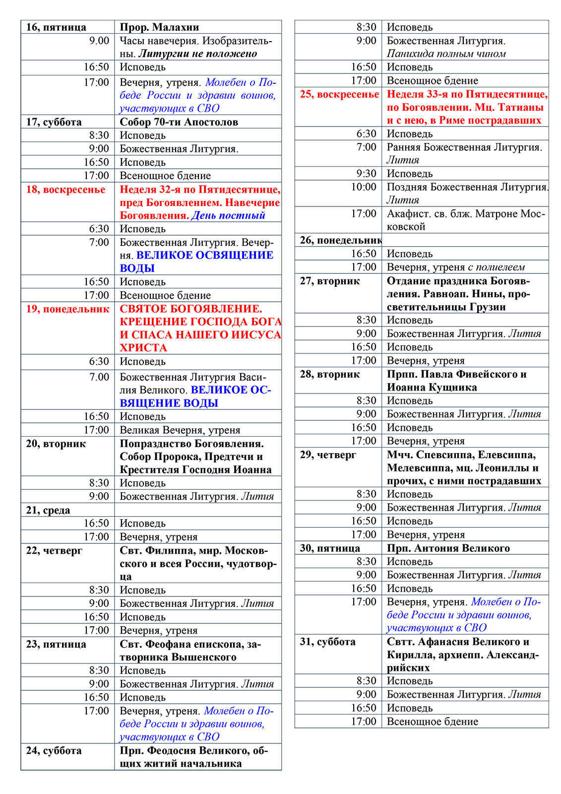 РАСПИСАНИЕ