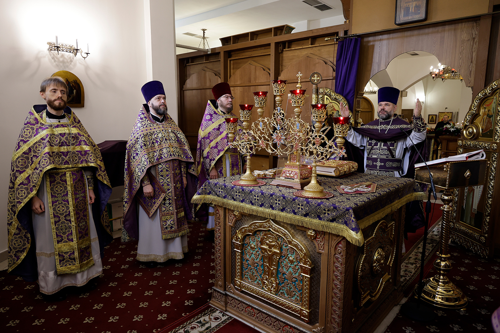 В этот день отец Димитрий совершил Божественную Литургию в нижнем храме святого праведного Иоанна Кронштадтского в сослужении клириков нашего прихода иерея Сергия Полякова, иерея Николая Калиниченко, иерея Александра Фадеева, иерея Вадима Жилкова, а также священников Московской епархии протоиерея Леонида Цапка и иерея Александра Акулина.