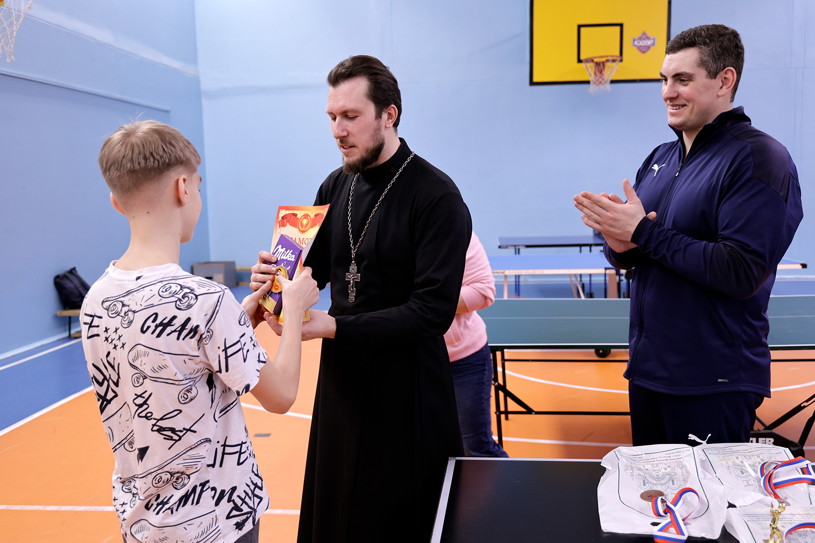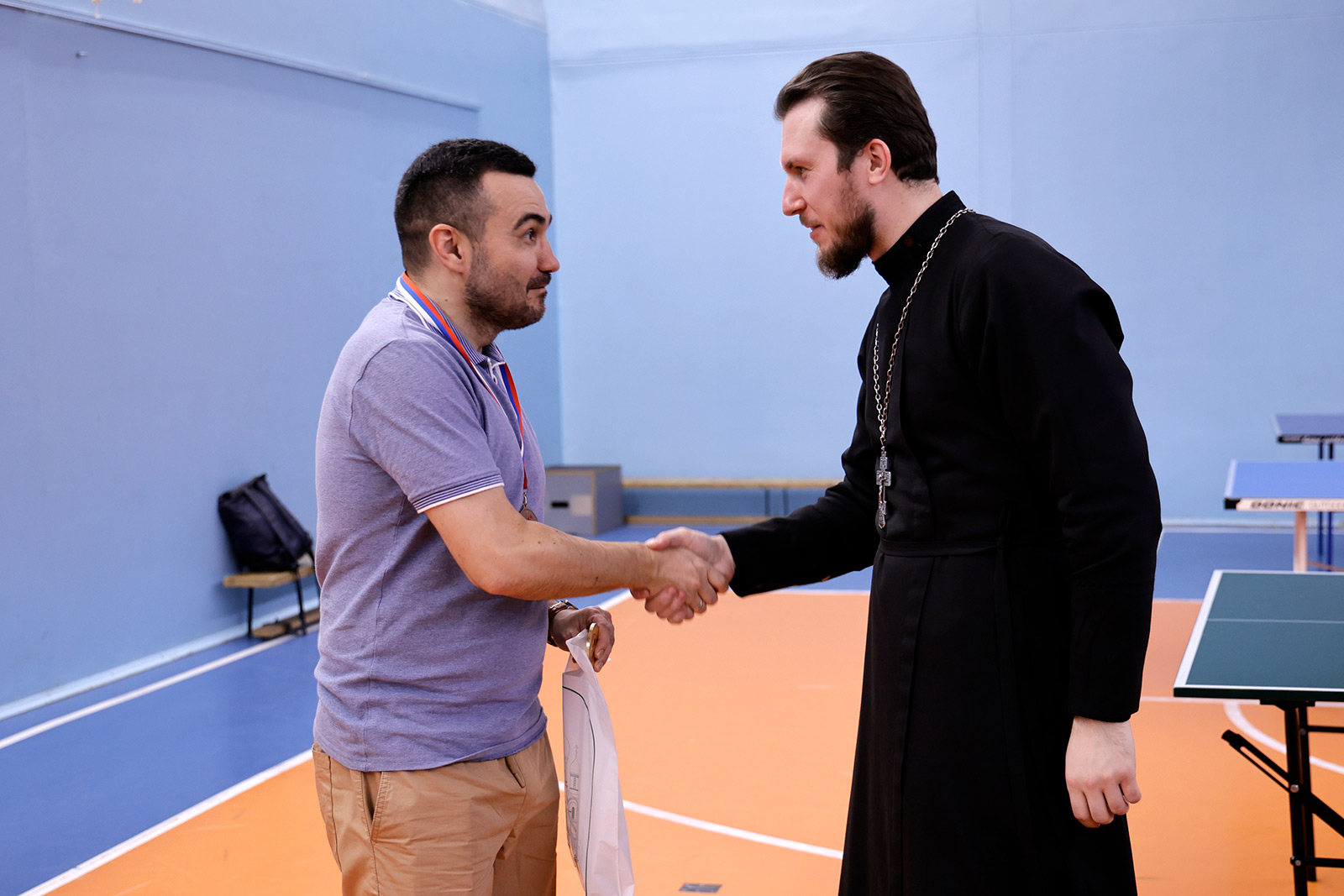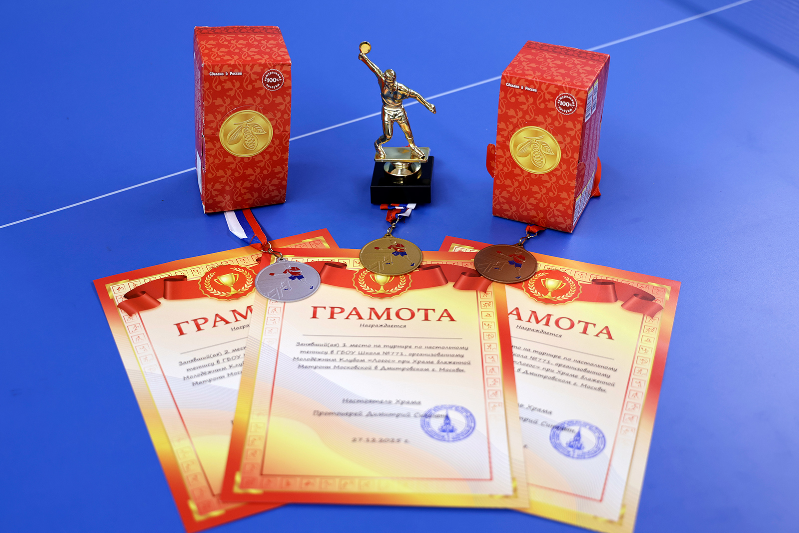 27 декабря 2025 г., по благословению настоятеля храма блж. Матроны Московской в Дмитровском гор. Москвы протоиерея Димитрия Синицына, состоялся турнир по настольному теннису в ГБОУ Школа 771, организованный руководителем Молодёжного Клуба «Логос» иереем Николаем Калиниченко и Спасовым Александром, ответственным за спортивную деятельность на приходе. В турнире принимали участие 17 человек с активной группой поддержки. В упорной, но дружественной борьбе определились призёры по двум группам :