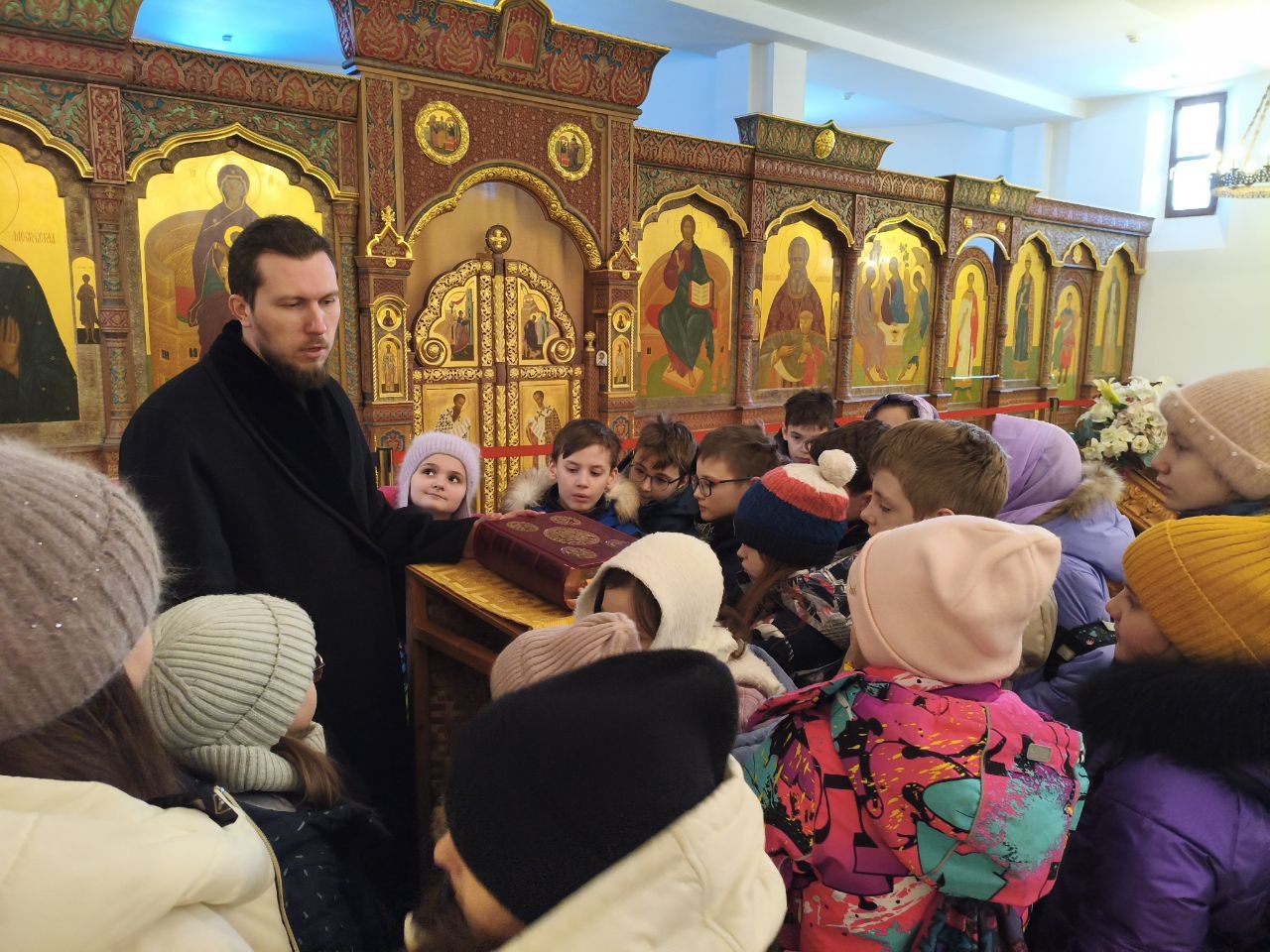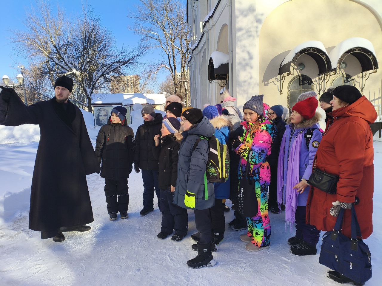30 января 2026 г., по благословению настоятеля храма протоиерея Димитрия Синицына, ответственный клирик нашего прихода за образовательную деятельность в Дмитровский районе г. Москвы, иерей Николай Калиниченко, провёл экскурсию по храму блж. Матроны Московской для учащихся 4-Н класса, школы № 236.