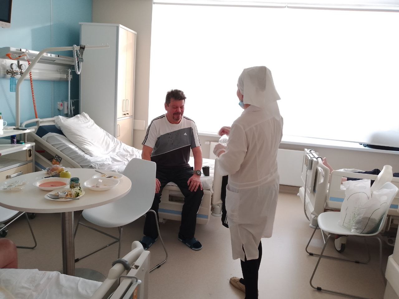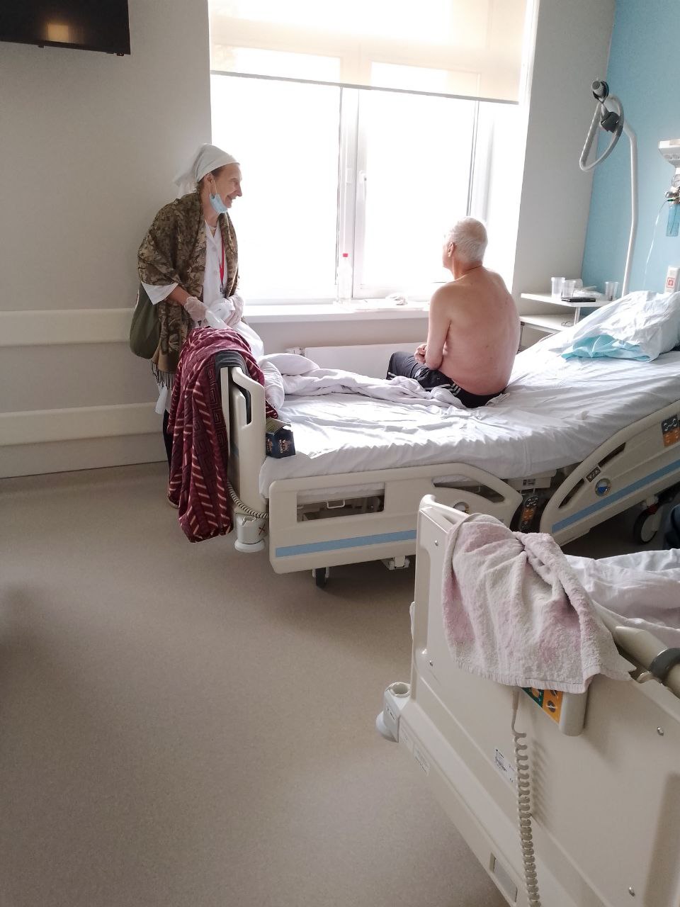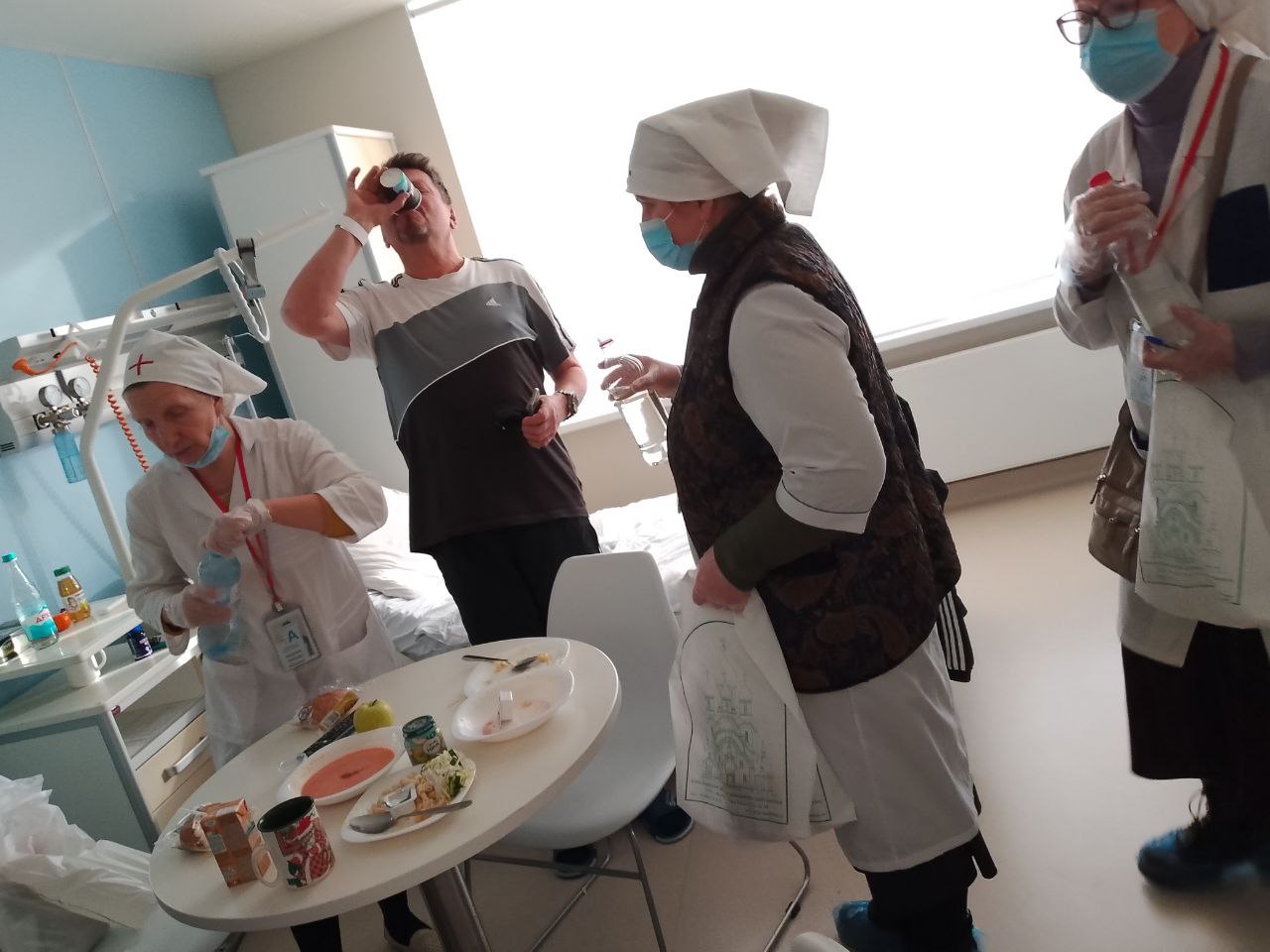 18 февраля, по благословению настоятеля храма блж. Матроны Московской в Дмитровском протоиерея Димитрия Синицына, сестры милосердия нашего прихода посетили больных в отделениях кардиохирургии и хирурги ГКБ им. В.В. Вересаева. Медперсонал больницы встретил доброжелательно, сестры раздавали крещенскую воду, окропили водой больных по их просьбе. Многие больные подали записки о здравии и упокоении, заказали 7 акафистов о здравии. Сестры пообщались с матерью воина Владимира, подали его имя в храмовый синодик. Её сын уже три года участвует в боевых действиях в зоне проведения СВО, мама очень переживает, находится в отделении кардиохирургии. Как могли утешали её. Очень много благодарных больных, благодарят и врачей, и медсестёр, поблагодарили и сестер милосердия за их скромный труд.
