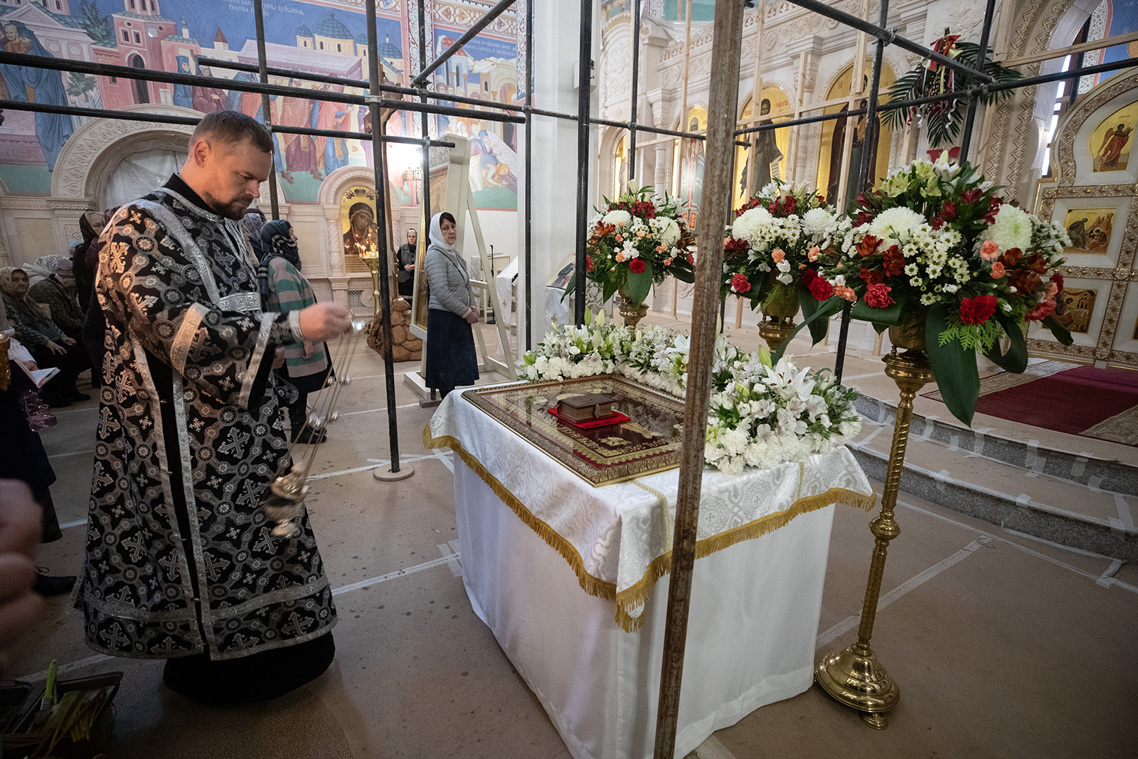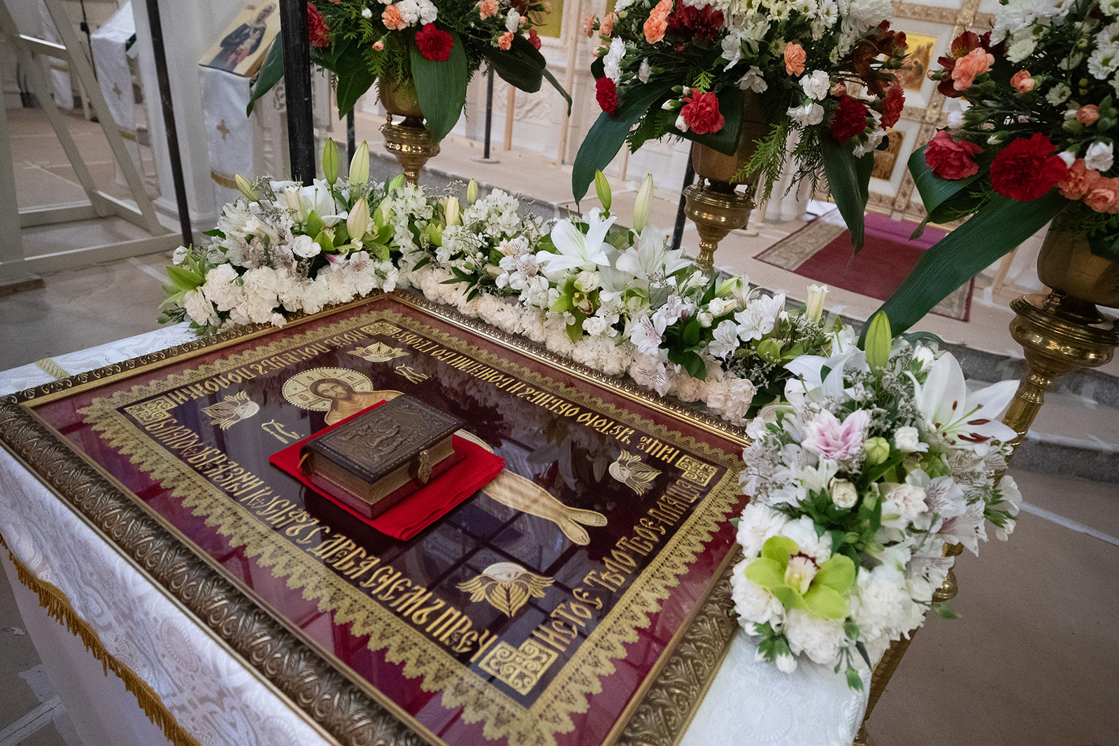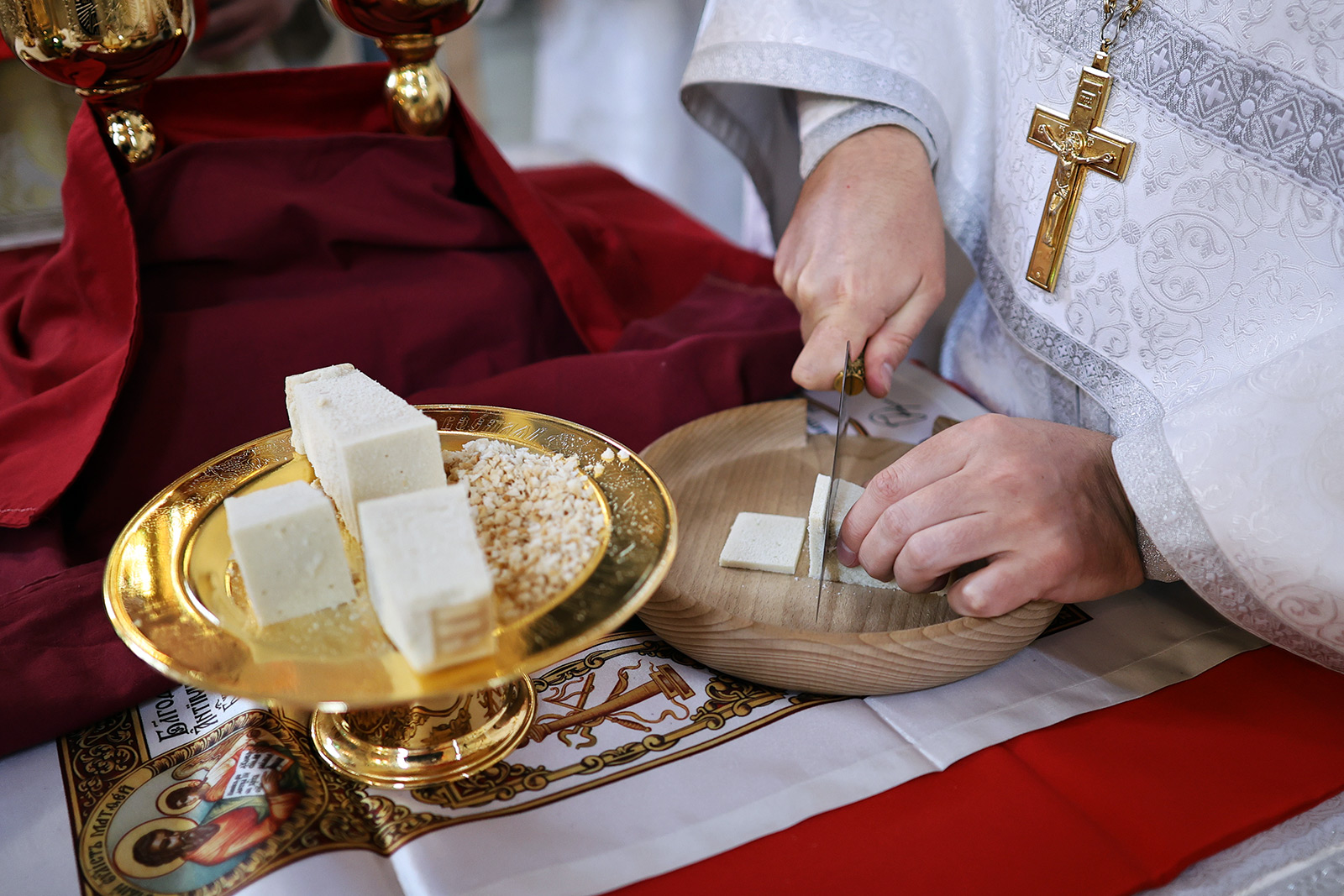 На литургии вместо Херувимской песни поется удивительный гимн: «Да молчит всякая плоть человеча и да стоит со страхом и трепетом, и ничтоже земное в себе да помышляет: Царь бо царствующих и Господь господствующих приходит заклатися и датися в снедь верным. Предходят же Сему лицы Ангельстии со всяким Началом и Властию, многоочитии Херувими и шестокрилатии Серафими, лица закрывающе и вопиюще песнь: аллилуиа, аллилуиа, аллилуиа».