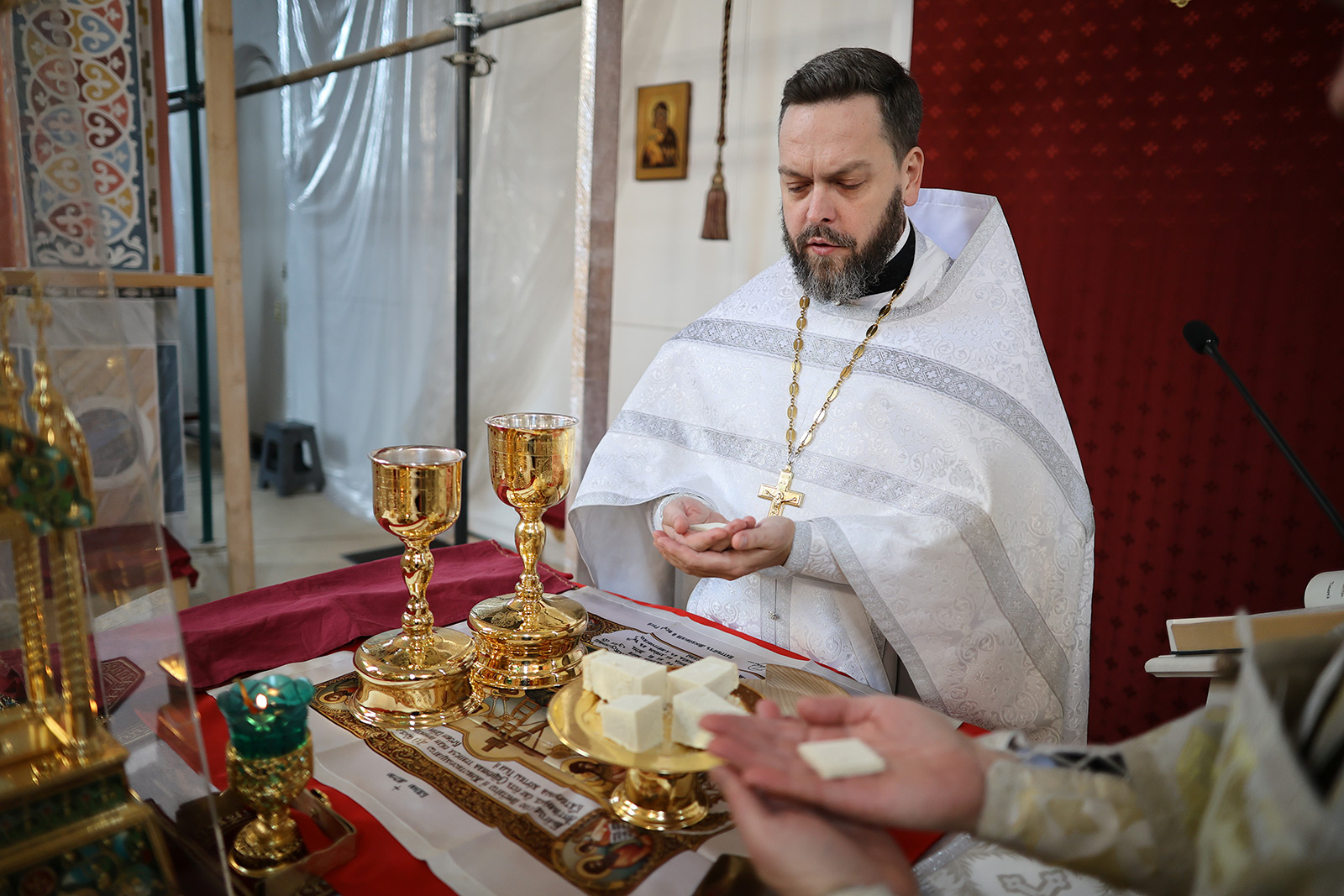 11 апреля 2026 года, в Великую Субботу, иерей Сергий Поляков совершил Божественную Литургия свт. Василия Великого в сослужении диакона Романа Мурзина.