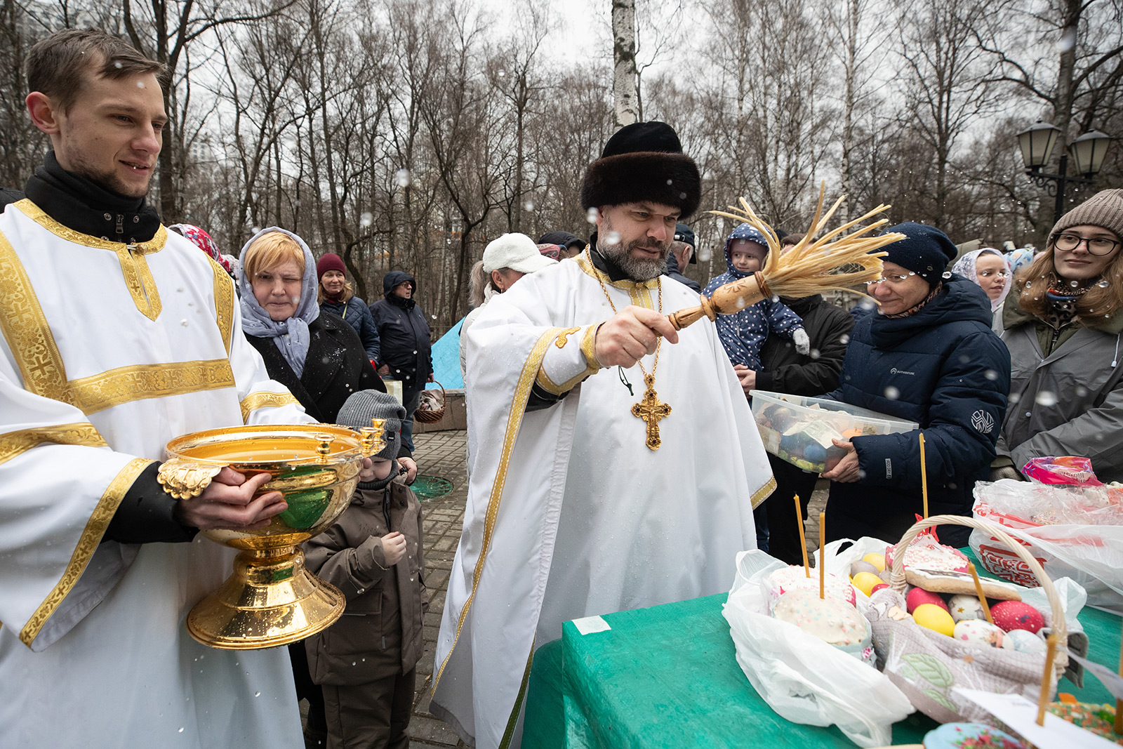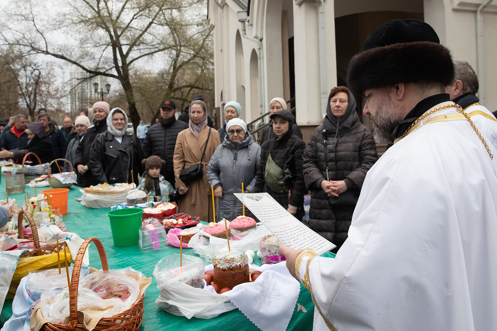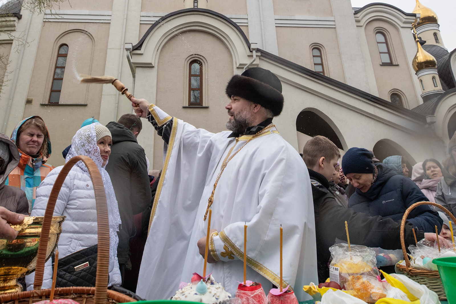 Настоятель храма протоиерей Димитрий Синицын первым совершил чин освящения куличей, пасок и яиц. Священники нашего храма, сменяясь, продолжат чин освящения до 19:00 часов сегодняшнего дня.