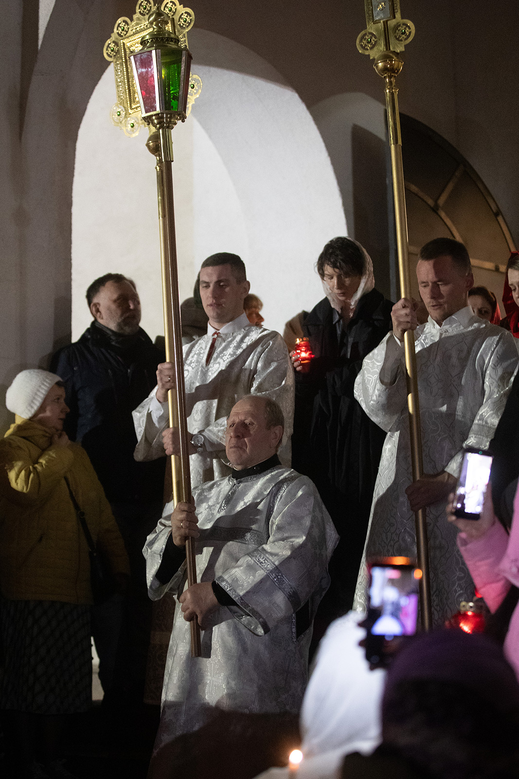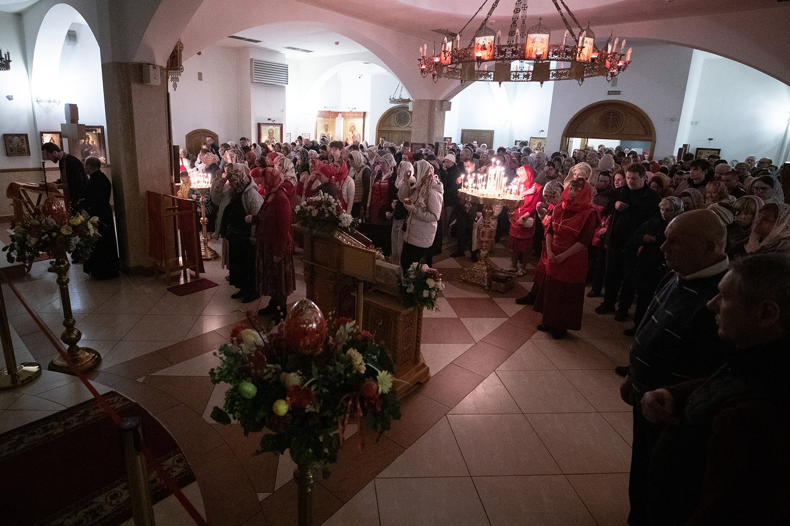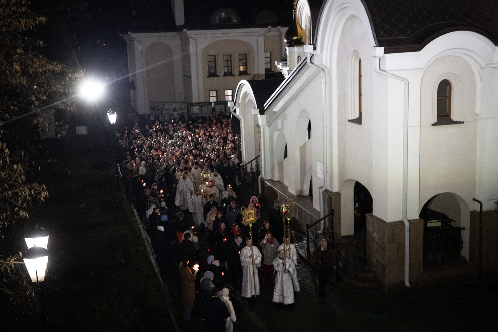 Светлая Пасхальная заутреня началась в полночь с торжественного Крестного хода вокруг храма. Он начинается еще в храме под тихое, но набирающее голос и торжество пение стихиры «Воскресение Твое, Христе Спасе, Ангели поют на Небесех…». Шествие, возглавляемое священнослужителями, и знаменующее собой путь навстречу Воскресшему Богу, прошло вокруг храма. Затем верующие с лампадками и свечами остановились у входа в притвор, чтобы впервые в этом году услышать слова «Христос воскресе!» и исполнить Пасхальный тропарь.