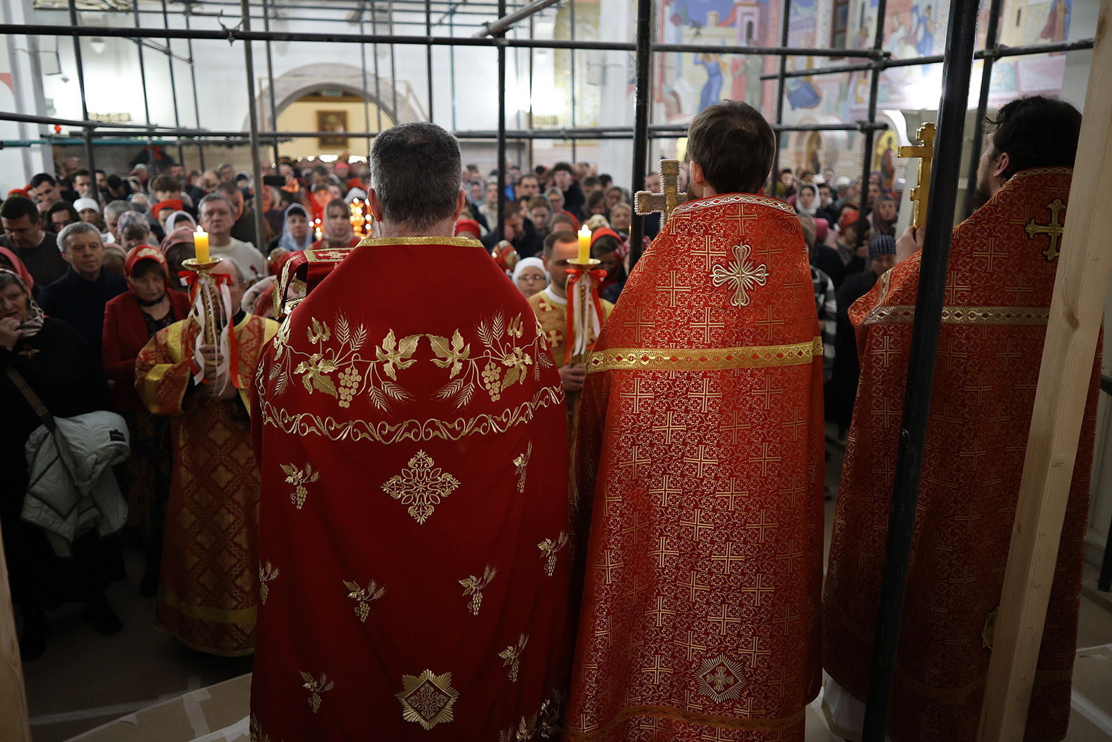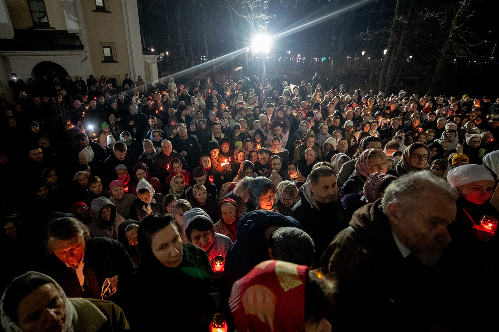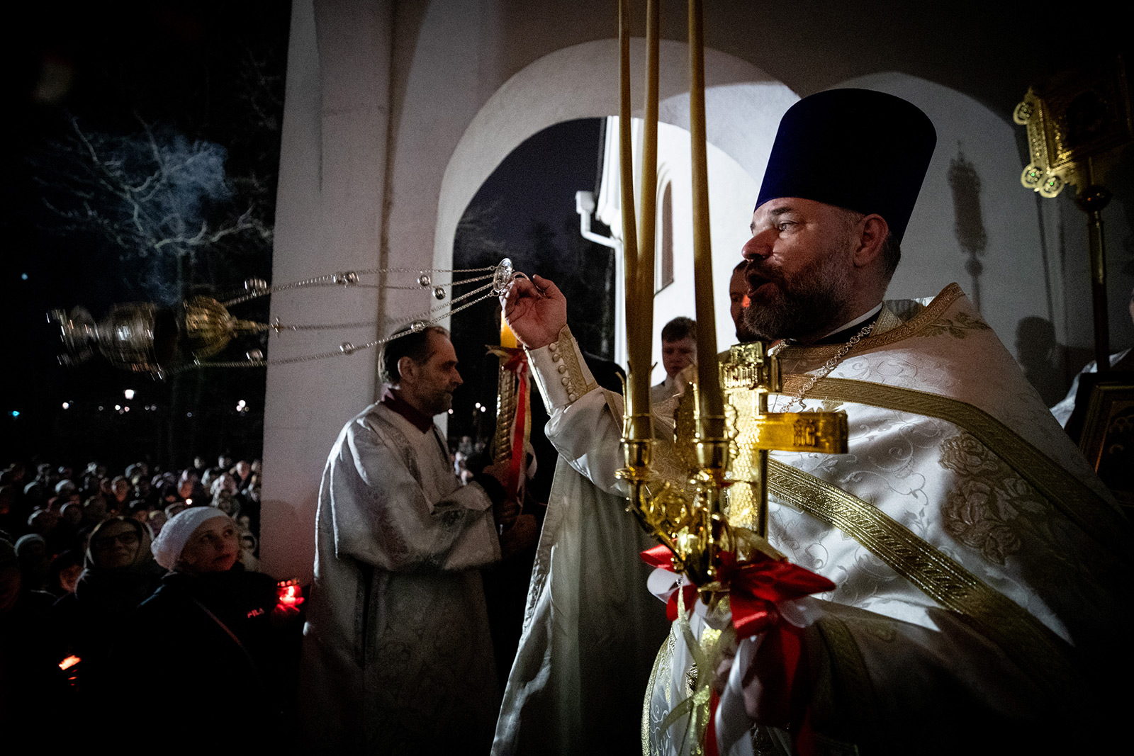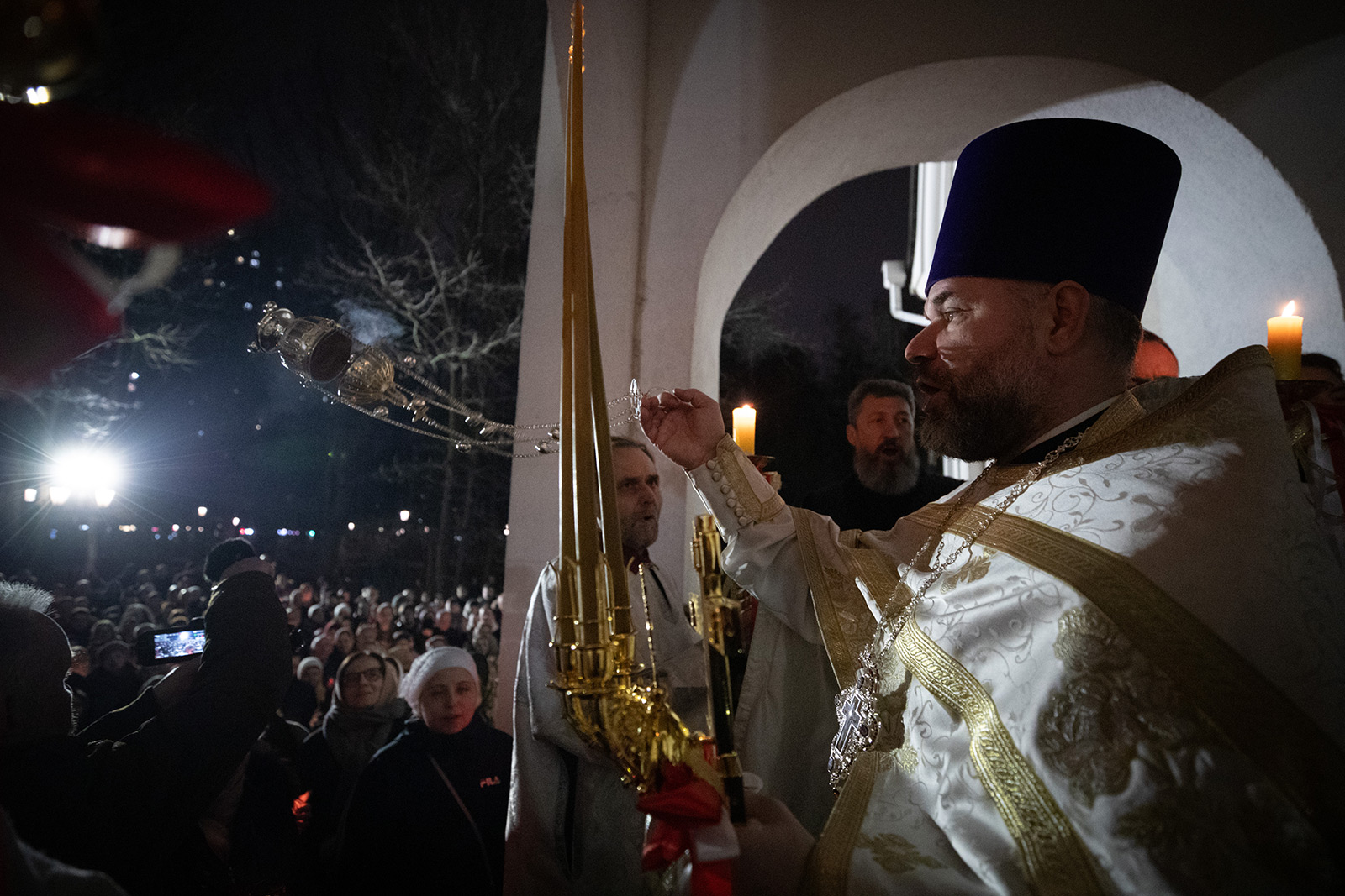 Светлая Пасхальная заутреня началась в полночь с торжественного Крестного хода вокруг храма. Он начинается еще в храме под тихое, но набирающее голос и торжество пение стихиры «Воскресение Твое, Христе Спасе, Ангели поют на Небесех…». Шествие, возглавляемое священнослужителями, и знаменующее собой путь навстречу Воскресшему Богу, прошло вокруг храма. Затем верующие с лампадками и свечами остановились у входа в притвор, чтобы впервые в этом году услышать слова «Христос воскресе!» и исполнить Пасхальный тропарь.