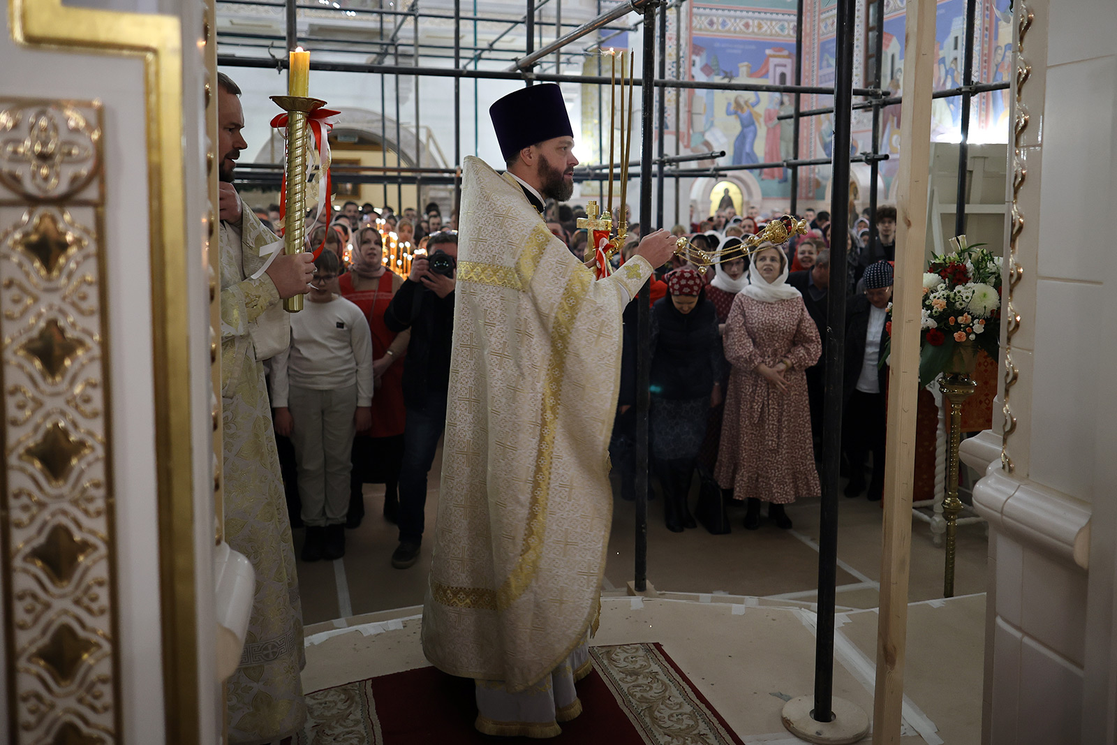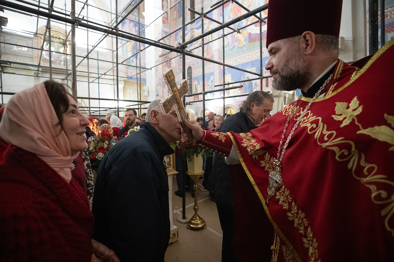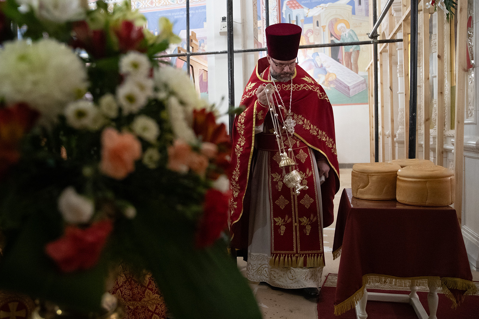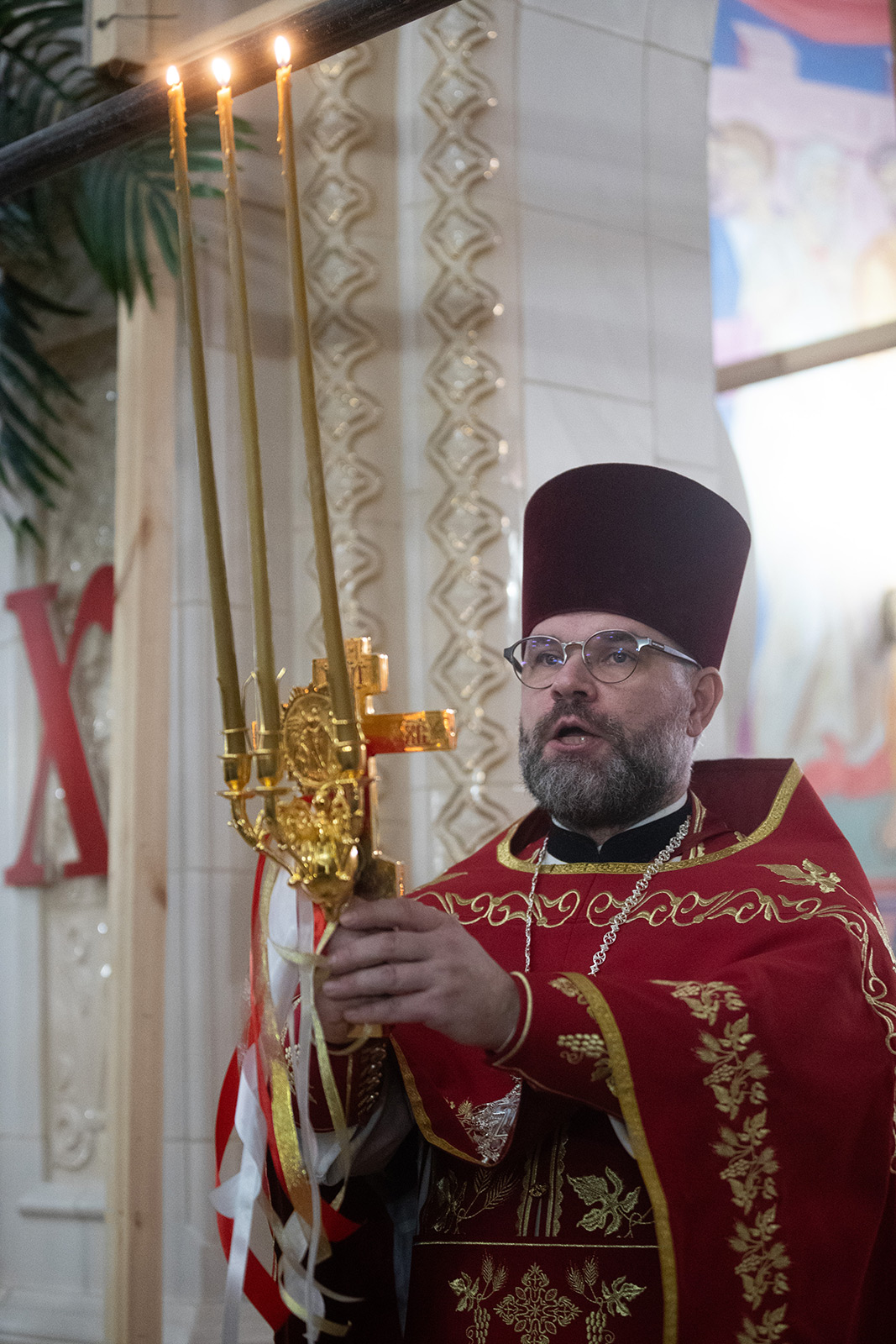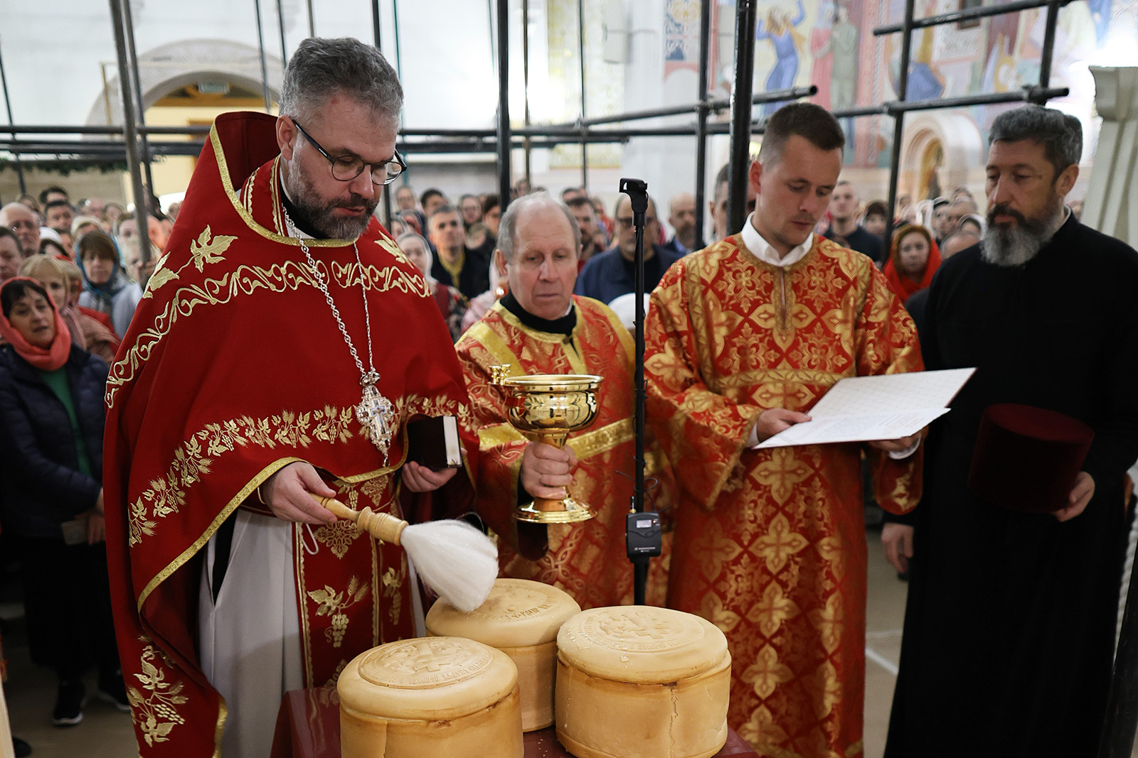 По завершении Литургии отец Димитрий освятил Артос – особый хлеб с изображением Креста или Воскресения Христова, который хранят в храме до следующей субботы, а потом раздают верующим.