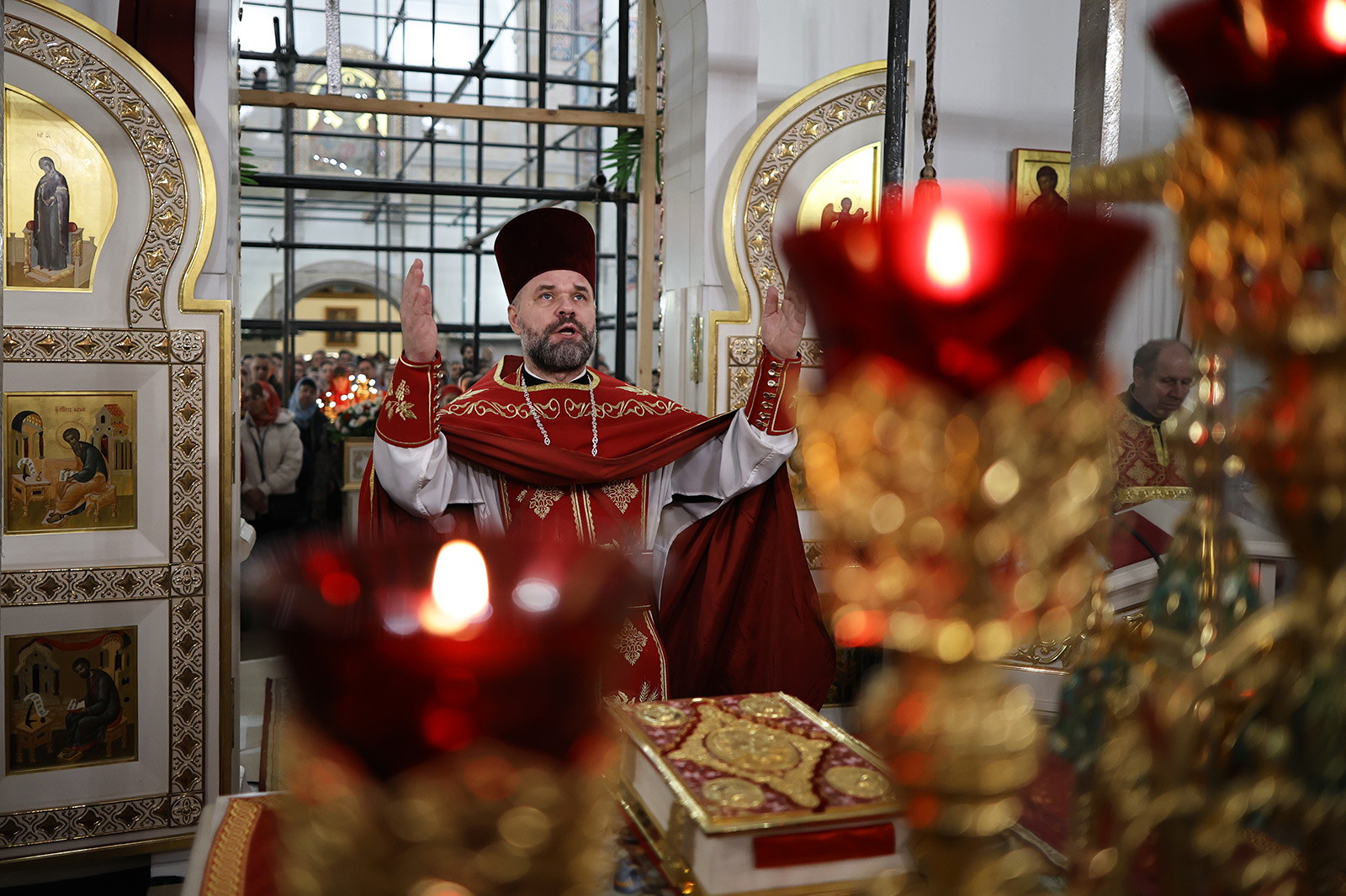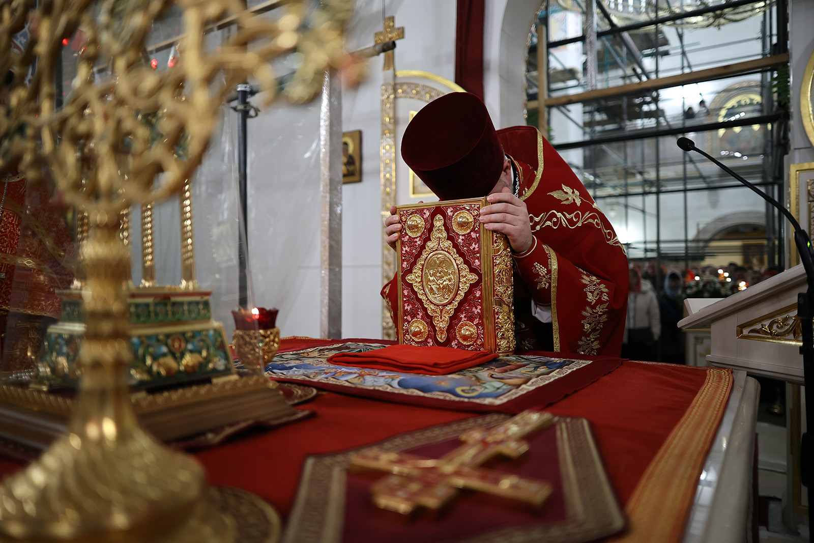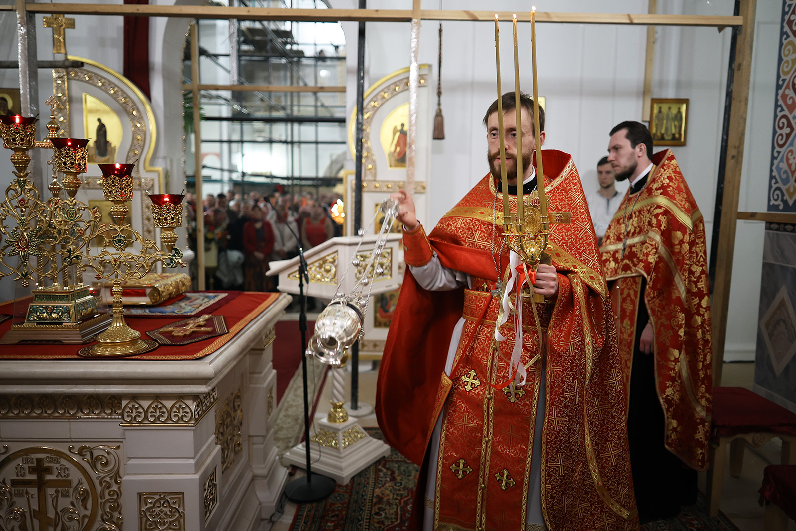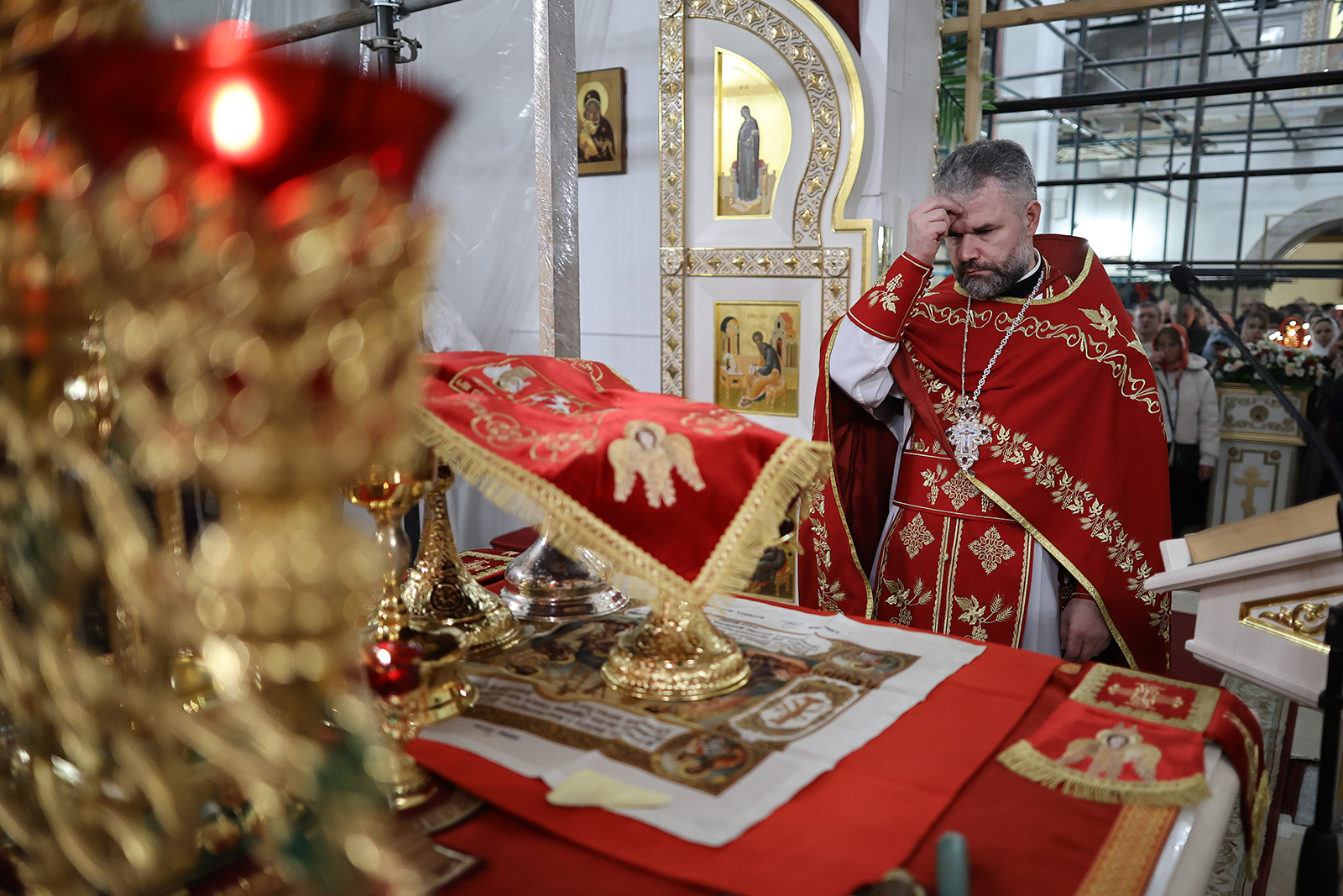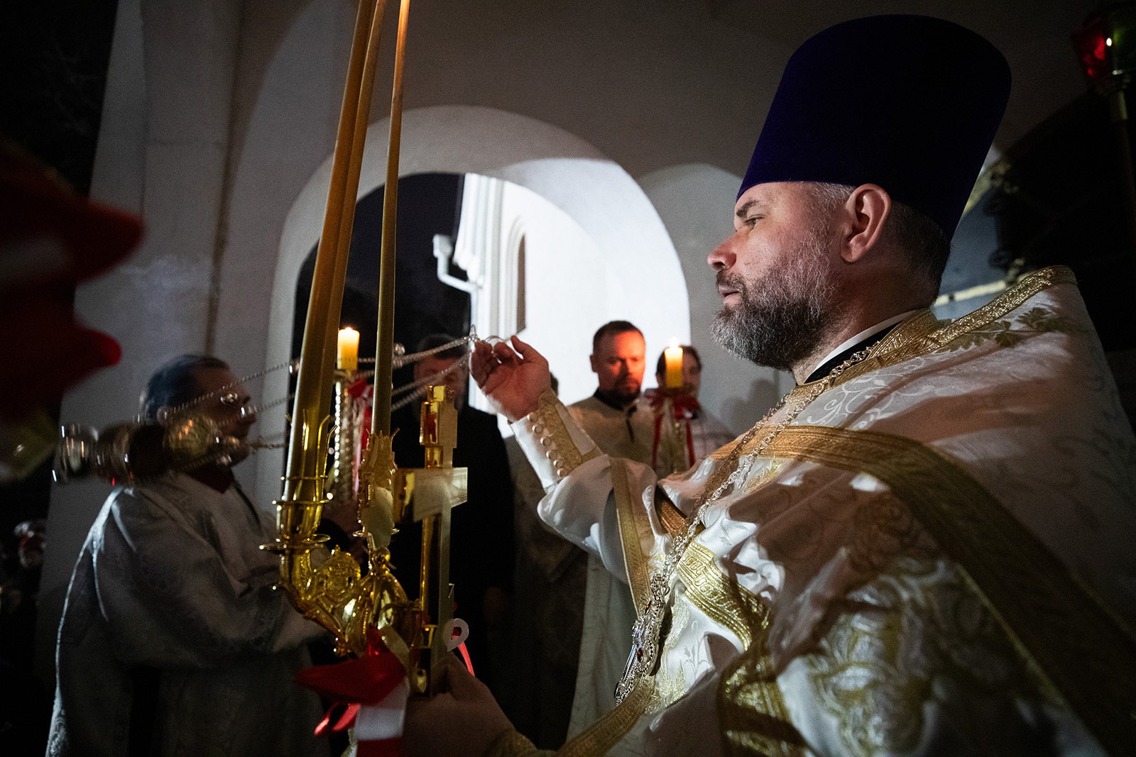 По завершении Литургии отец Димитрий освятил Артос – особый хлеб с изображением Креста или Воскресения Христова, который хранят в храме до следующей субботы, а потом раздают верующим.