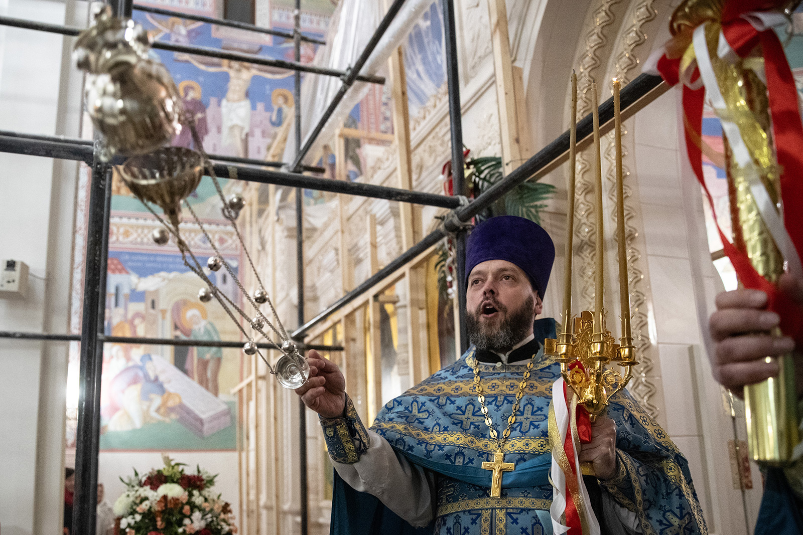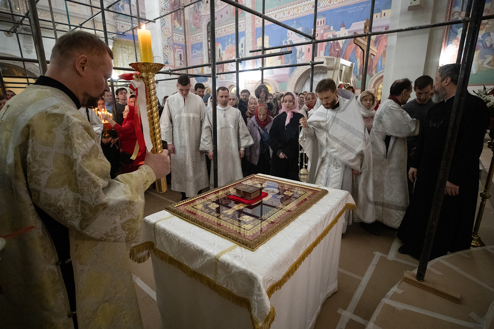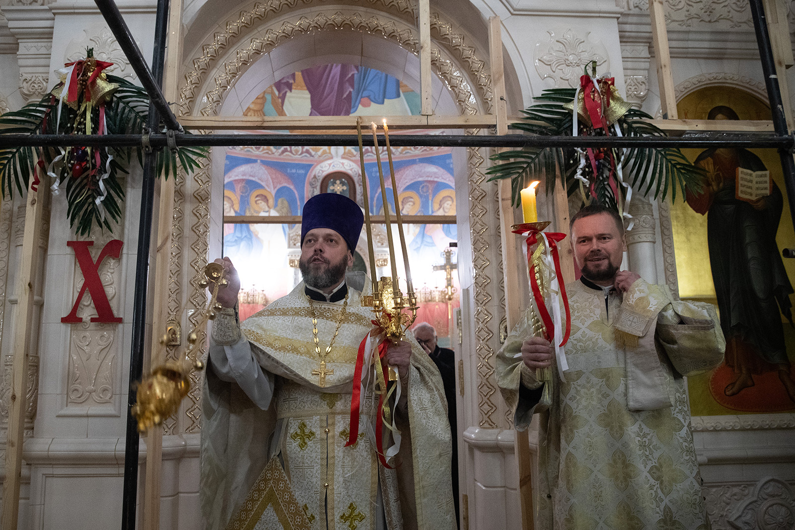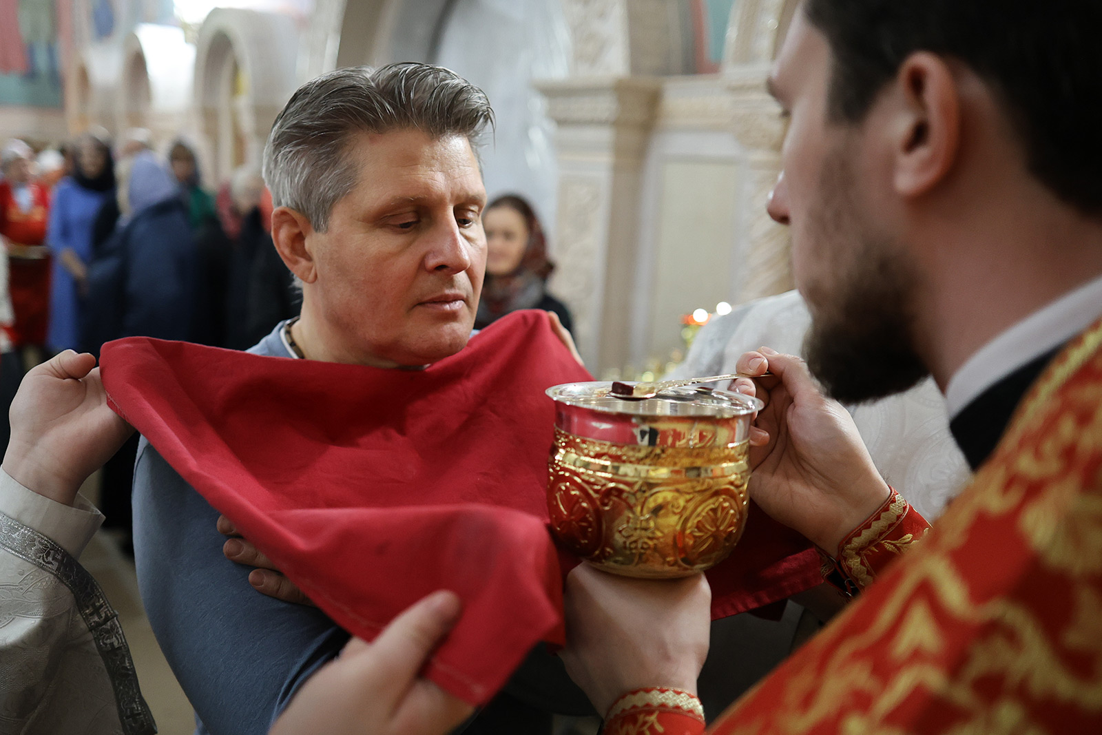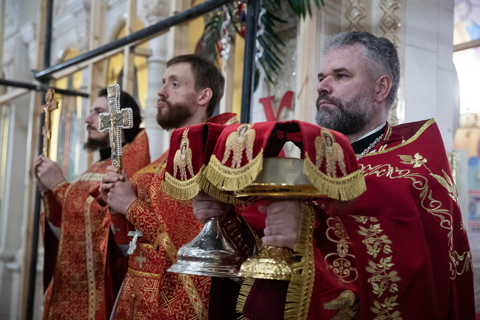 По завершении Литургии отец Димитрий освятил Артос – особый хлеб с изображением Креста или Воскресения Христова, который хранят в храме до следующей субботы, а потом раздают верующим.
