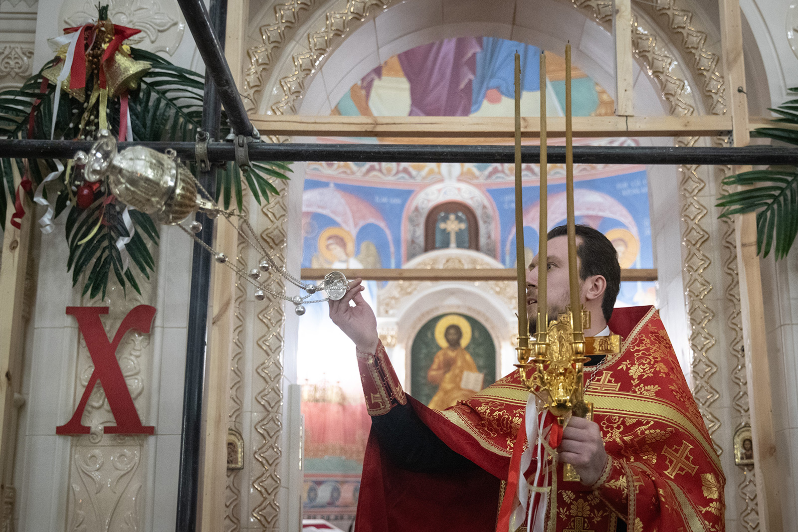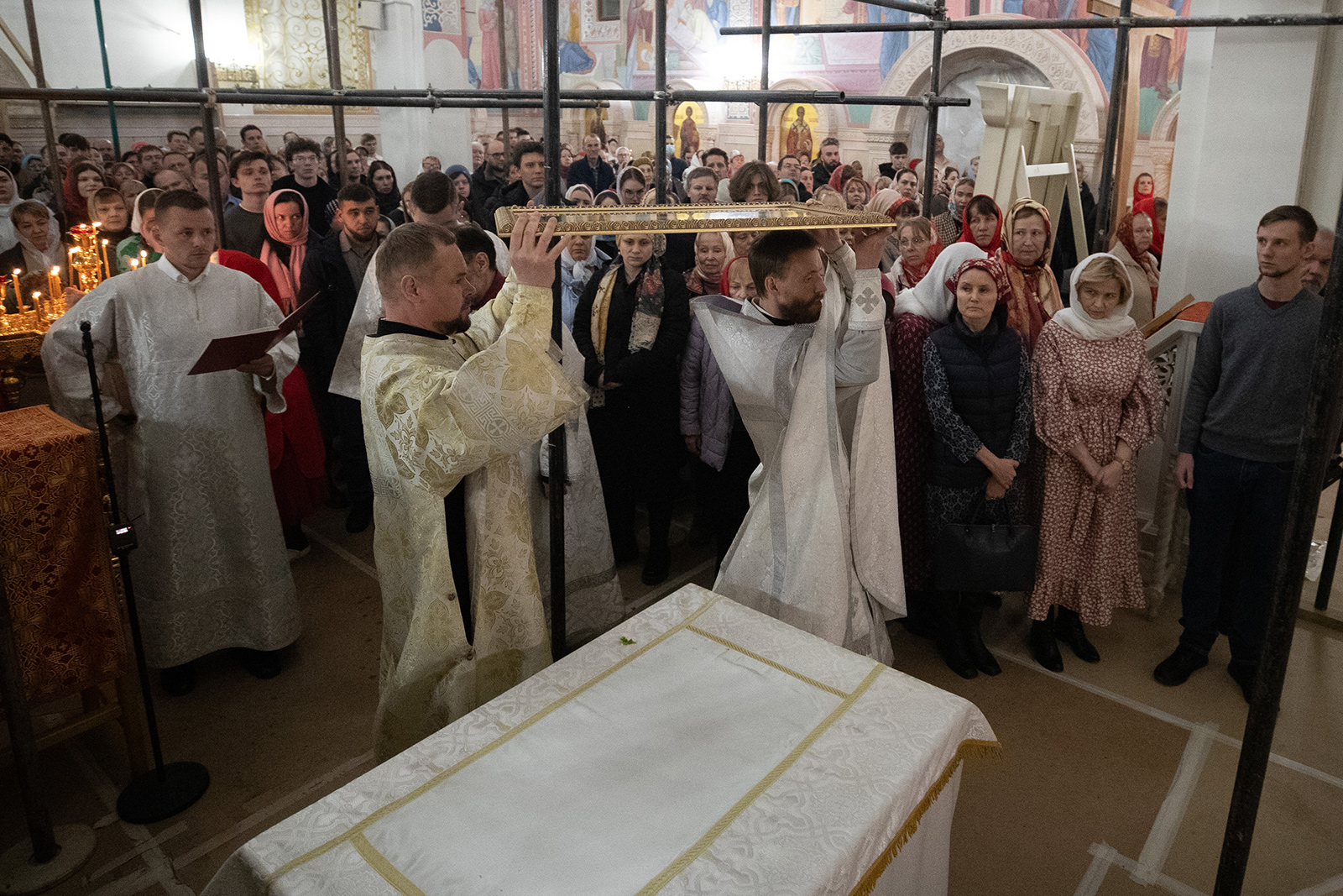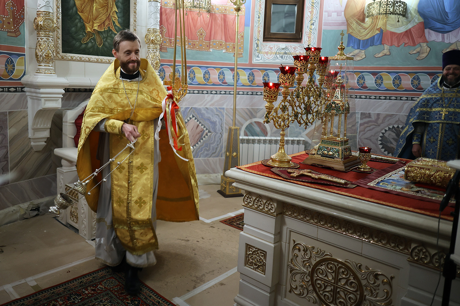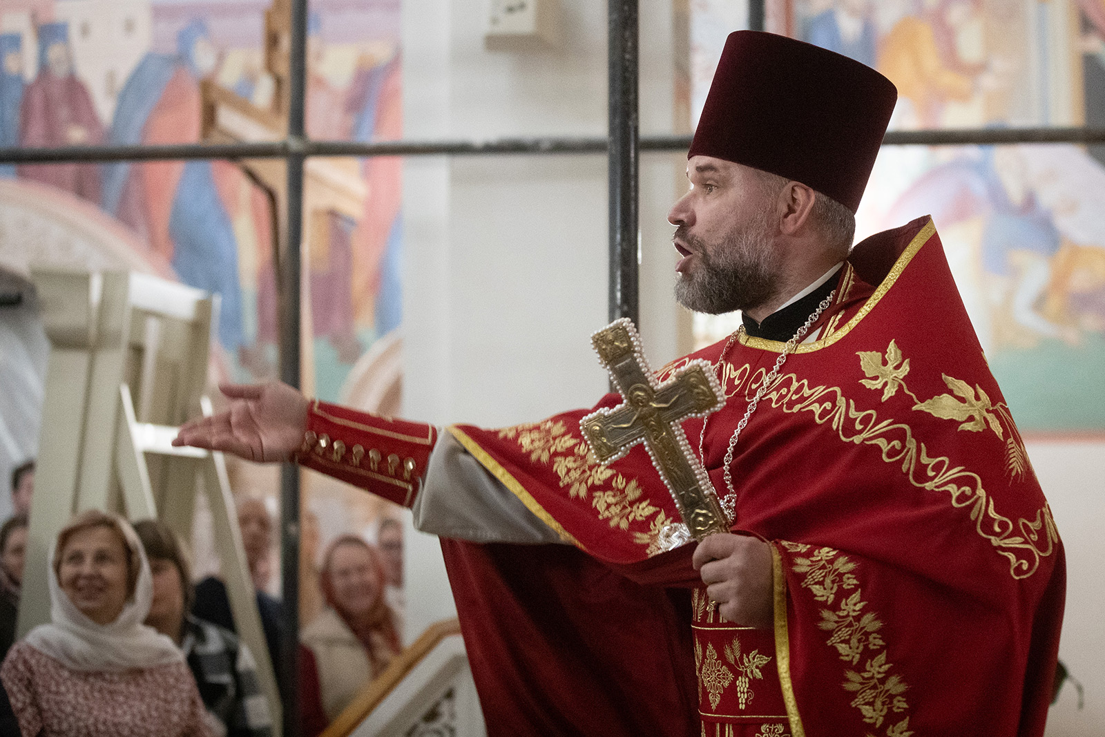 По завершении Литургии отец Димитрий освятил Артос – особый хлеб с изображением Креста или Воскресения Христова, который хранят в храме до следующей субботы, а потом раздают верующим.