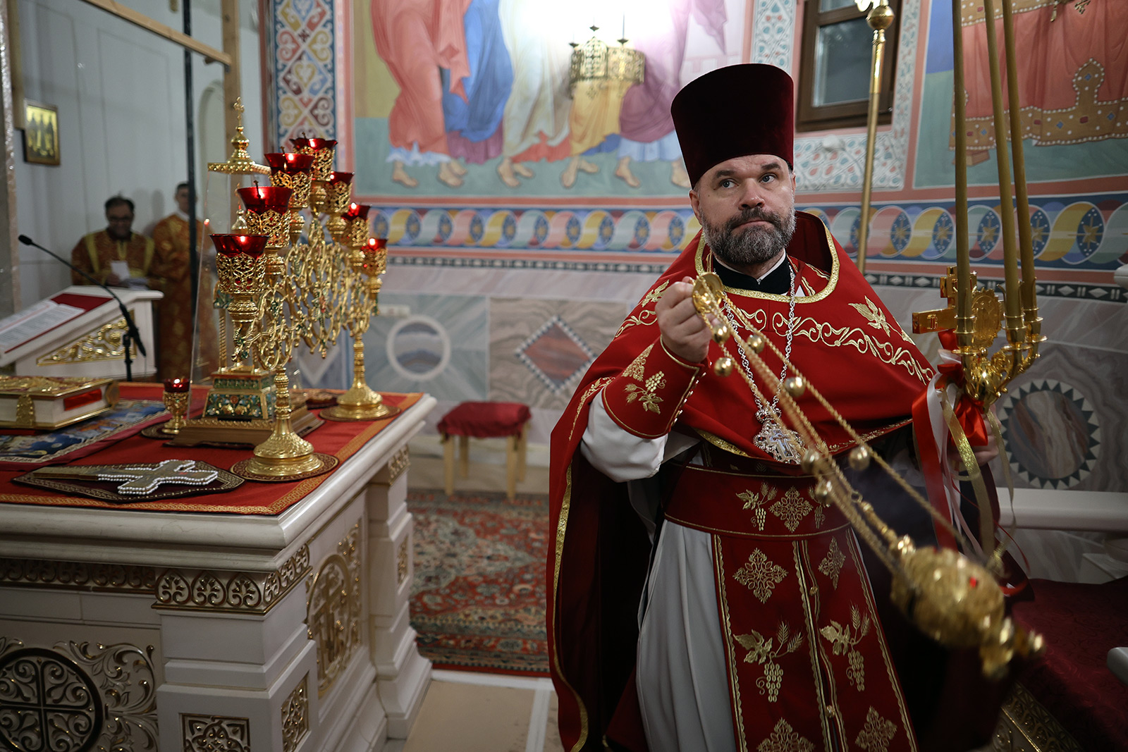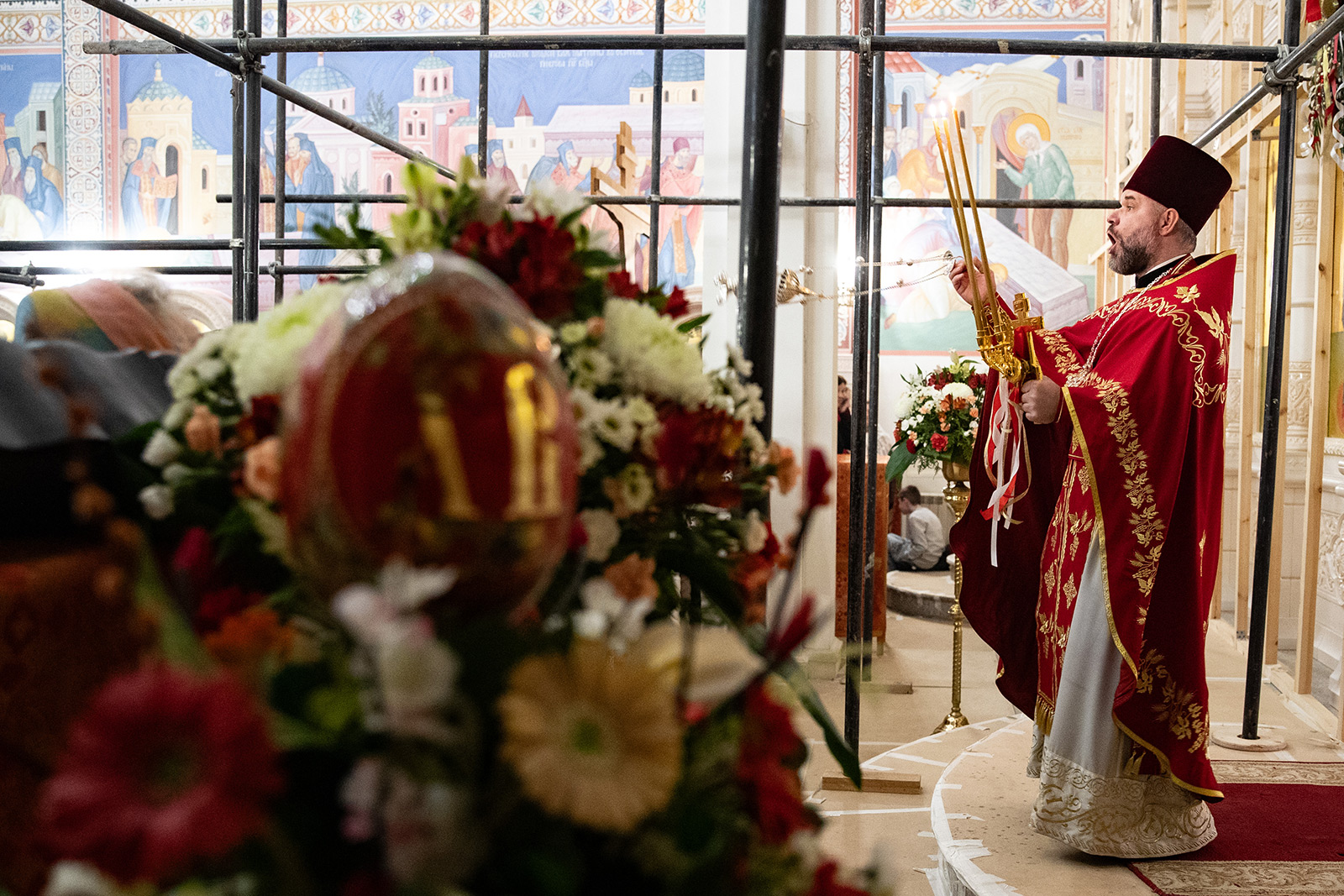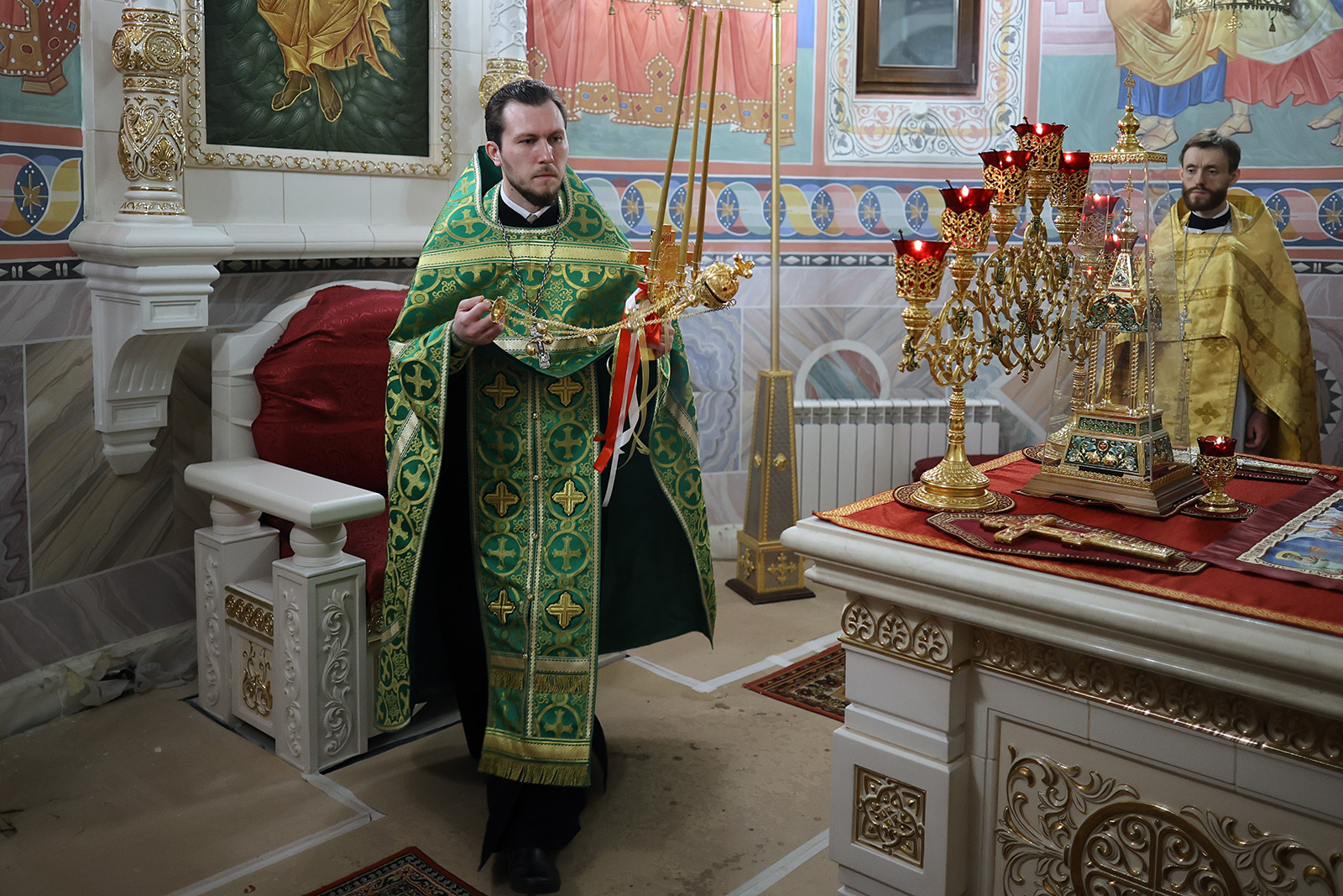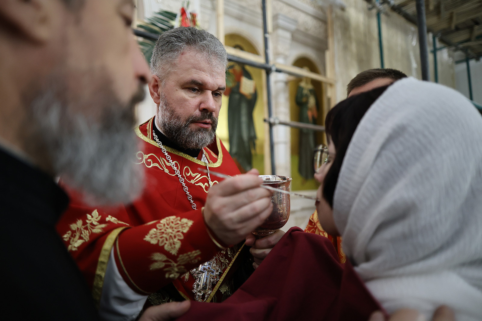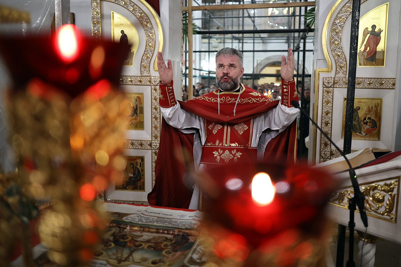 По завершении Литургии отец Димитрий освятил Артос – особый хлеб с изображением Креста или Воскресения Христова, который хранят в храме до следующей субботы, а потом раздают верующим.