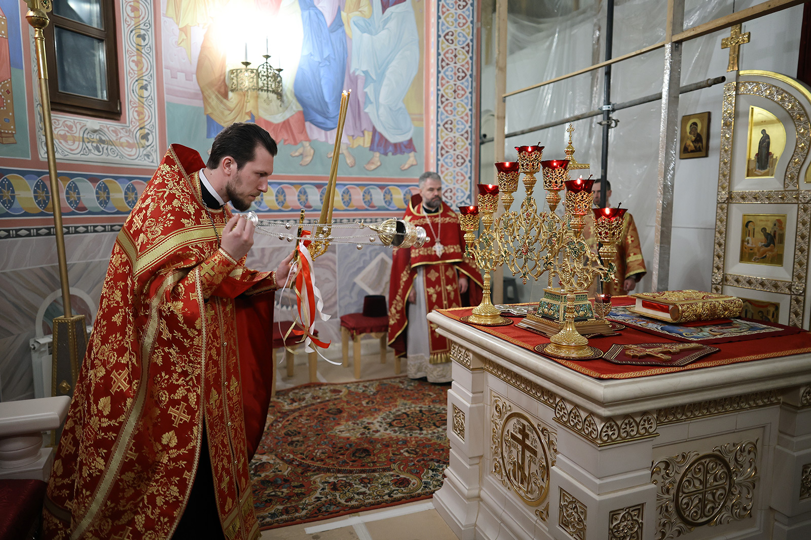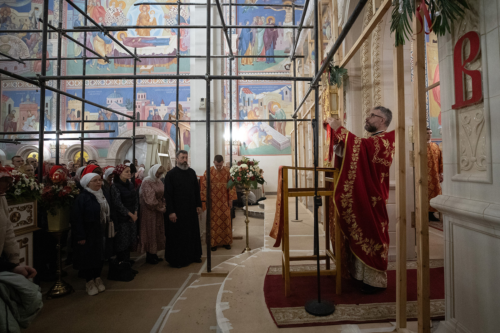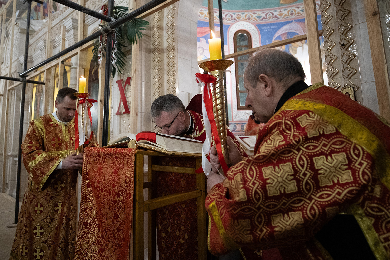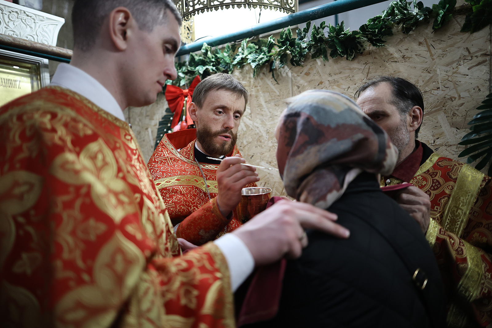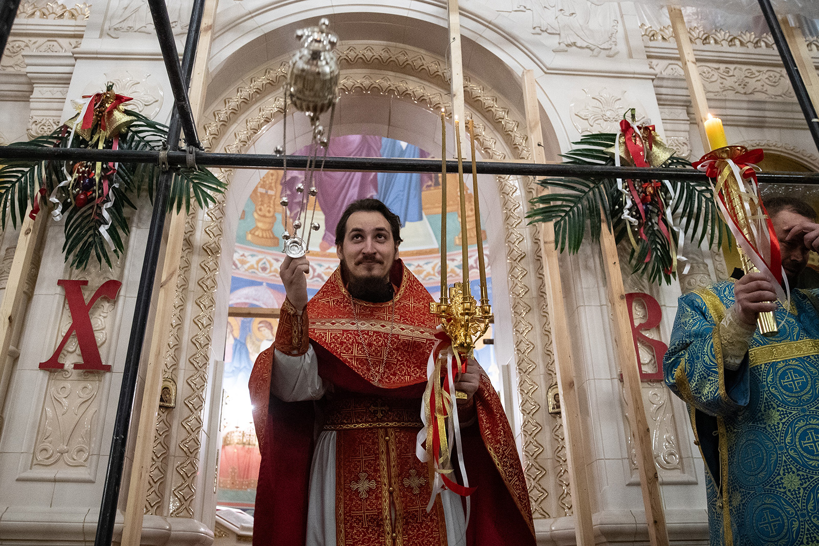 По завершении Литургии отец Димитрий освятил Артос – особый хлеб с изображением Креста или Воскресения Христова, который хранят в храме до следующей субботы, а потом раздают верующим.