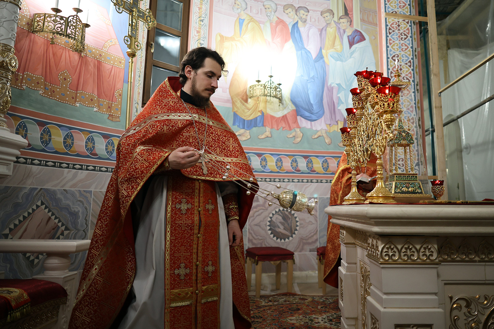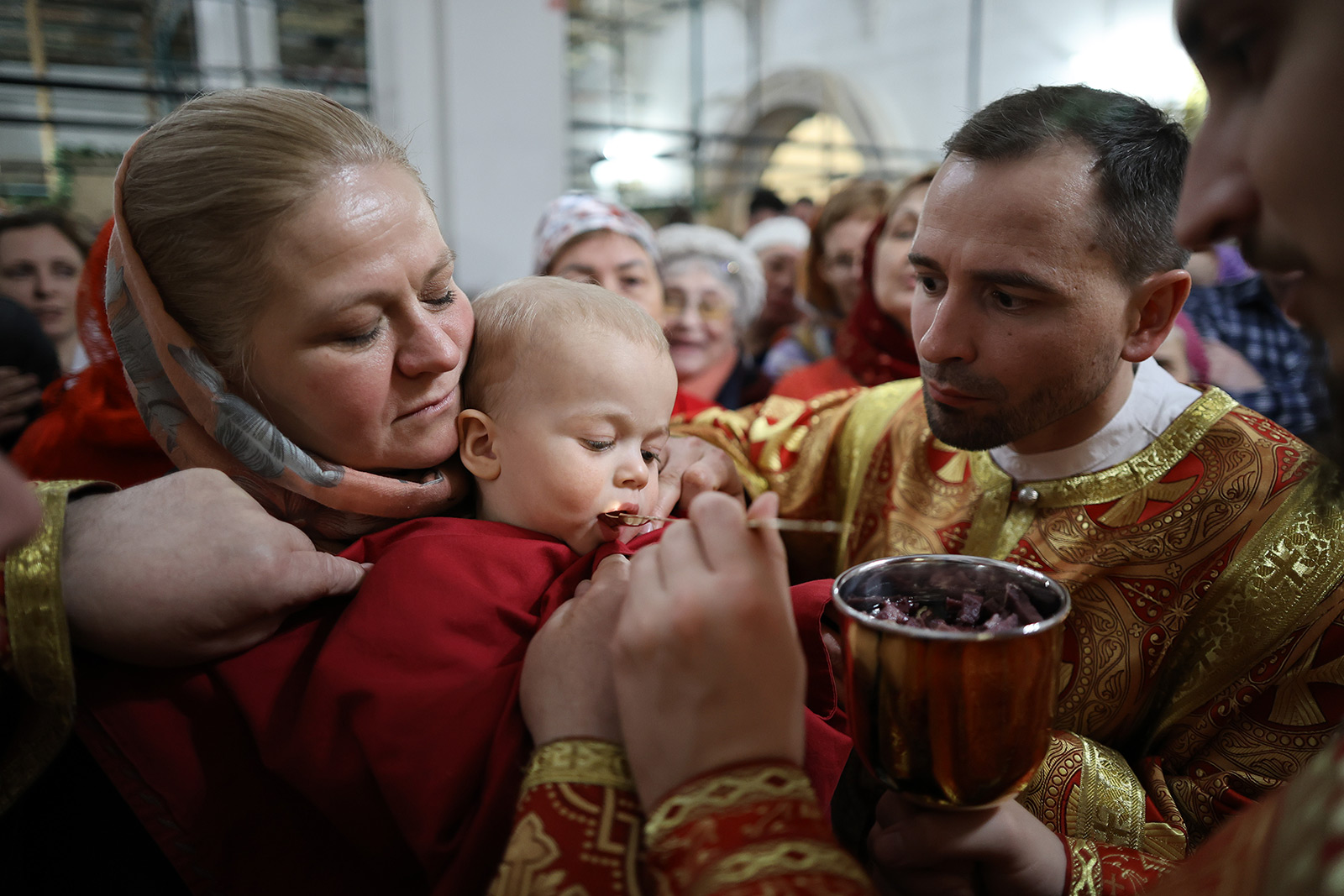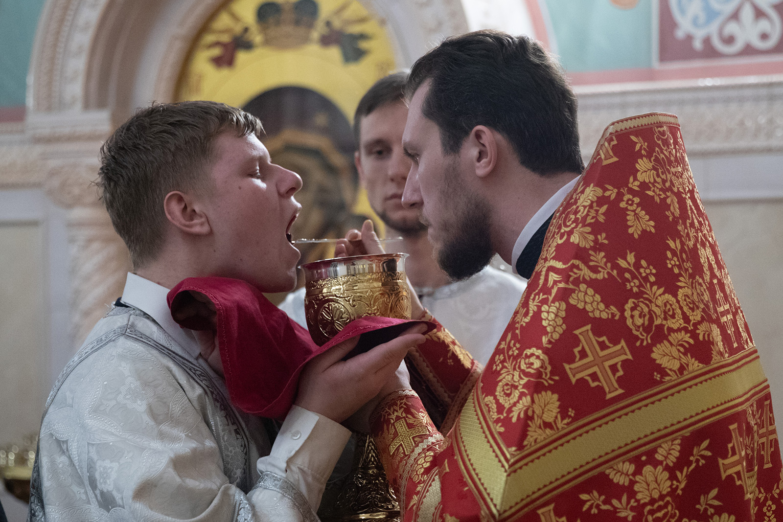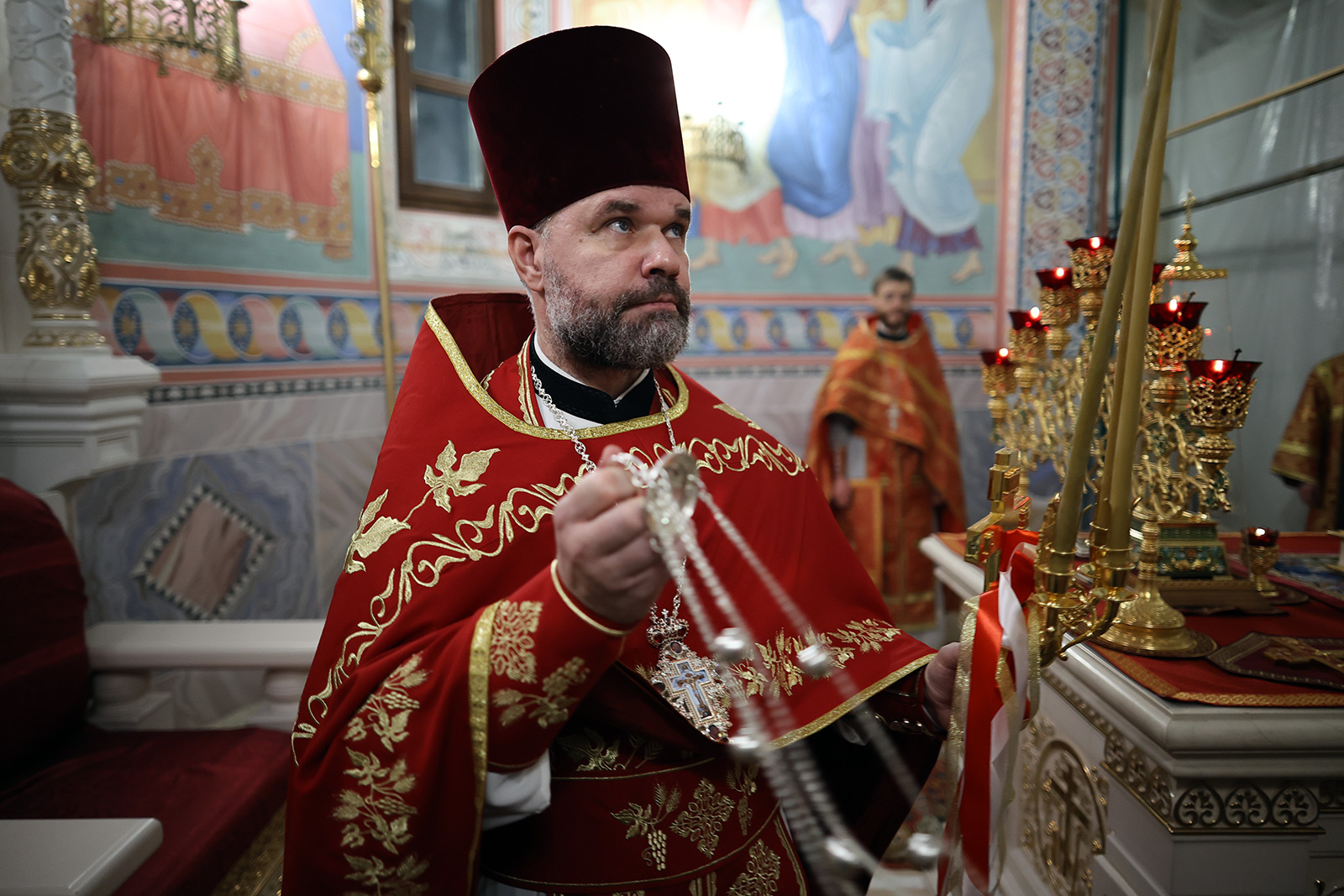 По завершении Литургии отец Димитрий освятил Артос – особый хлеб с изображением Креста или Воскресения Христова, который хранят в храме до следующей субботы, а потом раздают верующим.