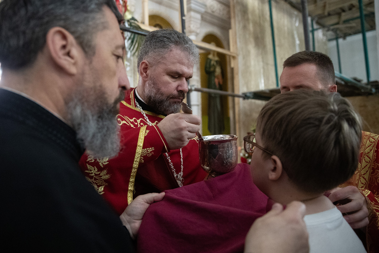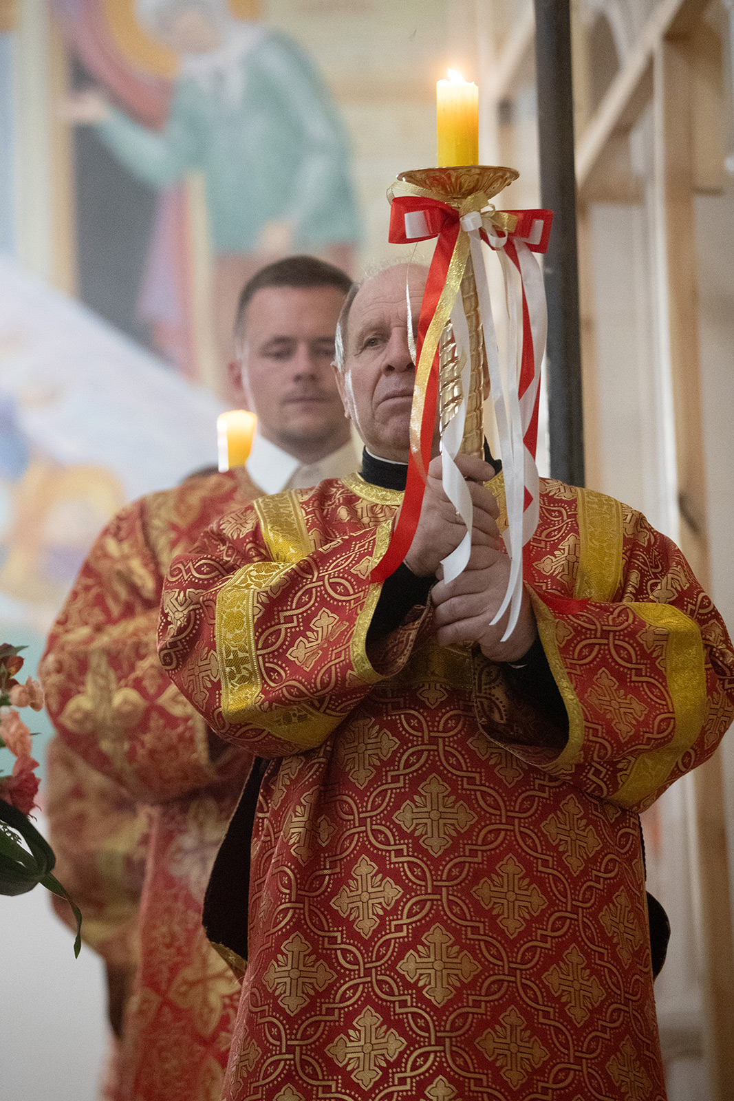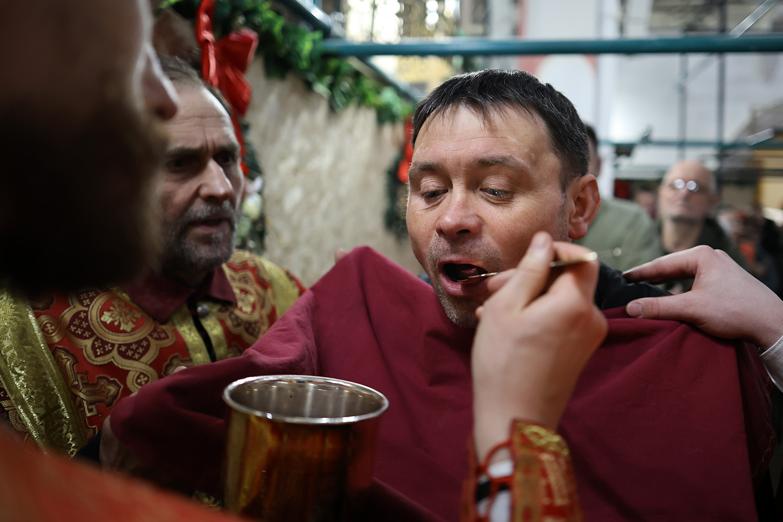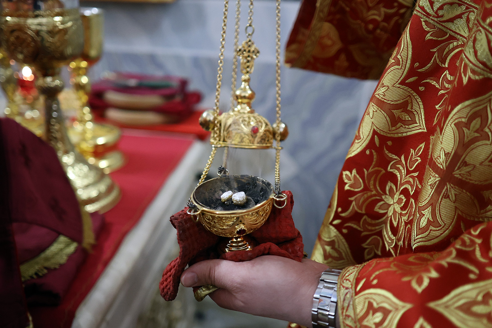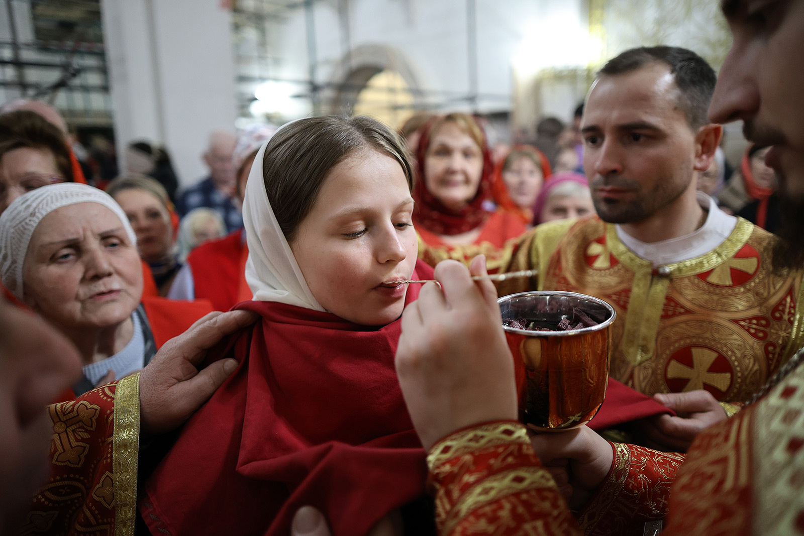 По завершении Литургии отец Димитрий освятил Артос – особый хлеб с изображением Креста или Воскресения Христова, который хранят в храме до следующей субботы, а потом раздают верующим.